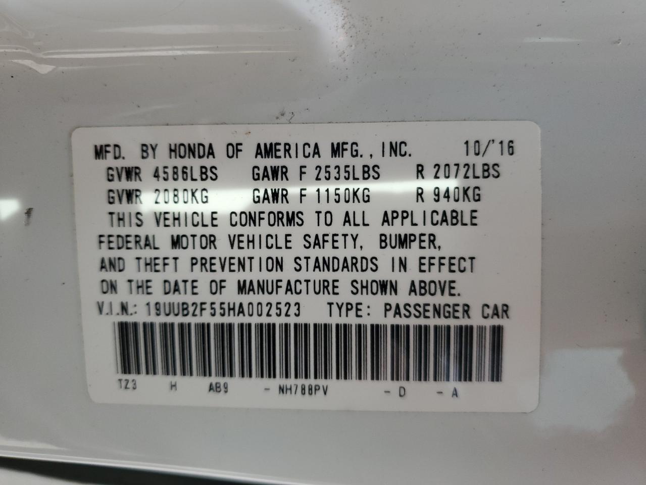 19UUB2F55HA002523Final Bid