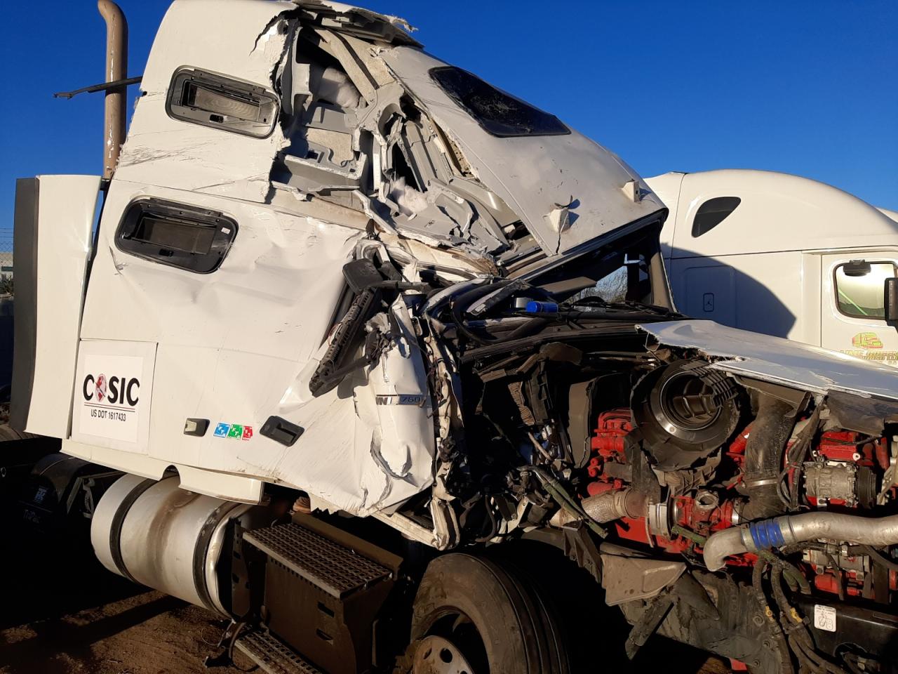 Heavily damaged Volvo VN VNL 2020, rollover and crushing of the front end.