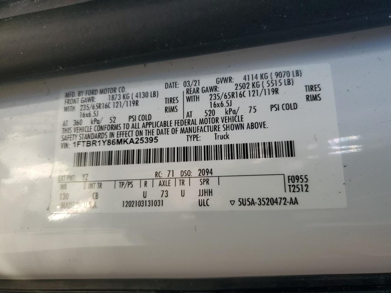 1FTBR1Y86MKA25395Final Bid