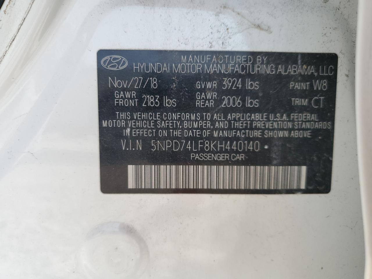 5NPD74LF8KH440140Final Bid