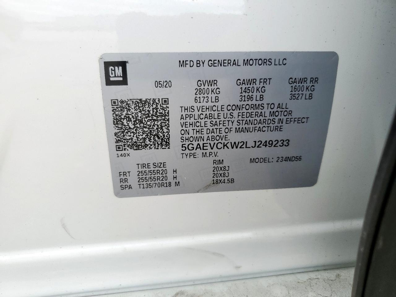 5GAEVCKW2LJ249233Final Bid