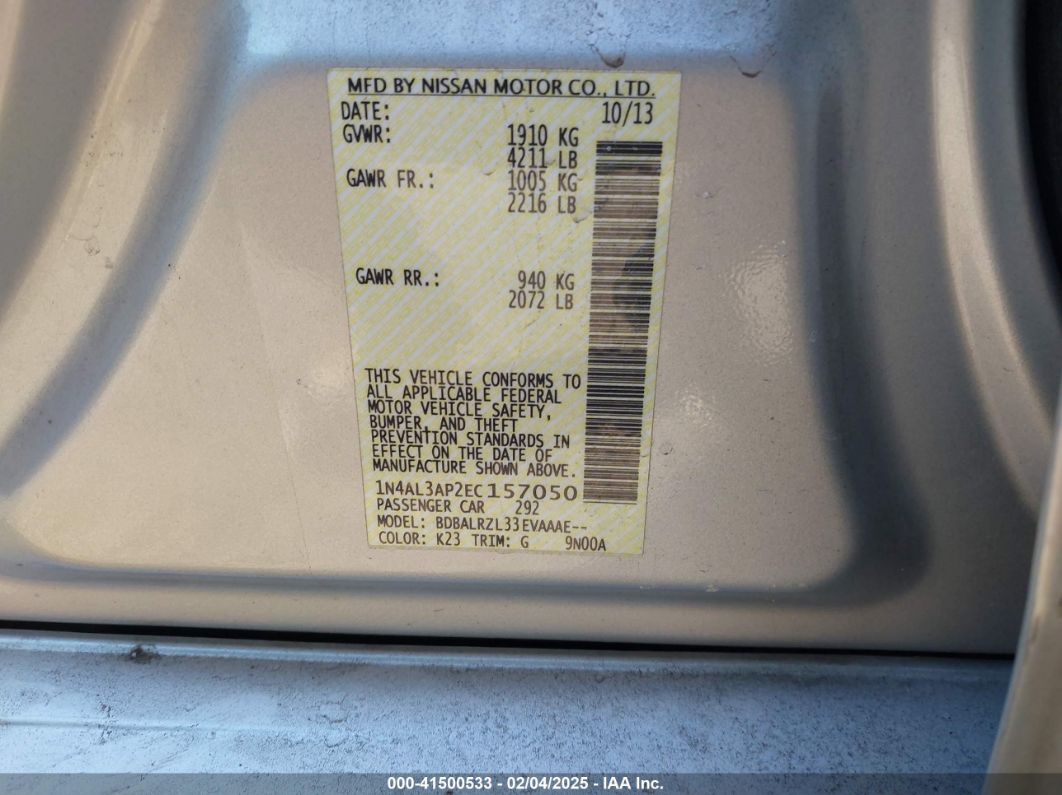 FairThis is a 2014 Nissan Altima 2.5 S, silver in color, classified as Run & Drive Verified. The vehicle presents with front-end damage, indicating a Body damage category. The exterior shows moderate visible damage. The interior condition is good. The car is drivable, but repairs are needed. The vehicle's overall state reflects the damage, requiring attention.
