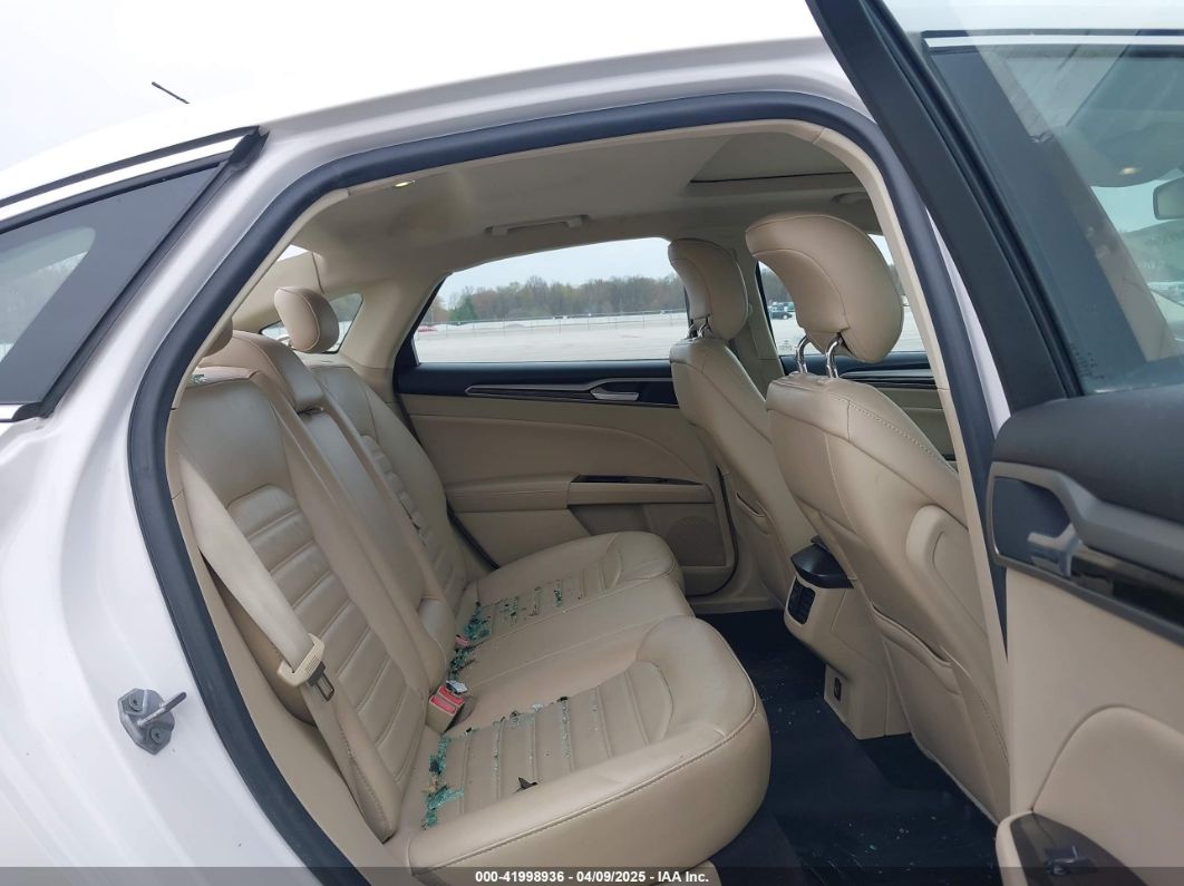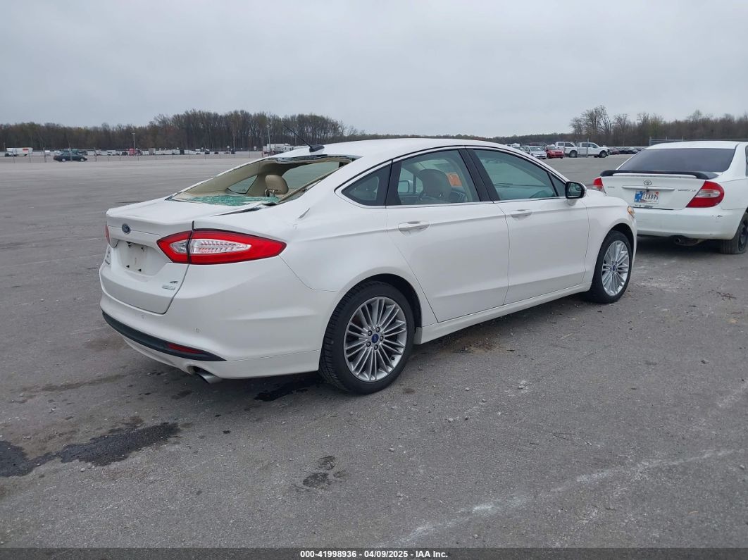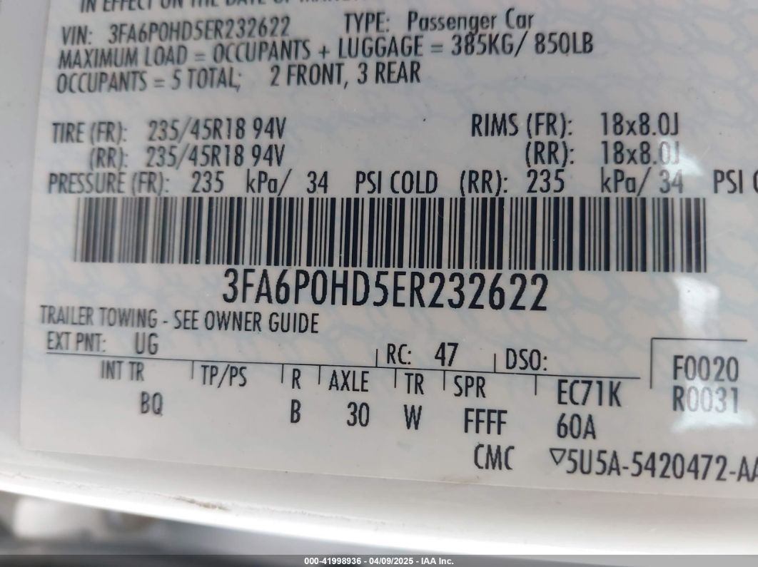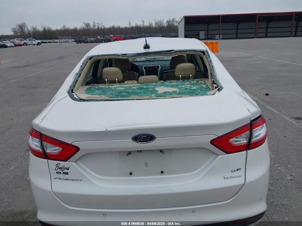 FairThis is a 2014 Ford Fusion SE, the primary damage is in the rear, with secondary damage categorized as 'other.' The vehicle is white, and has a 'Run & Drive Verified' status. The car's state is 'Fair'. The wheel condition appears to be fine. There is notable damage including a broken rear windshield, and visible damage to body panels, indicative of a crash or collision.