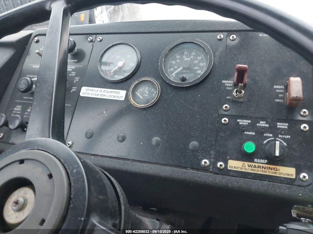 FairThis is a 2005 GILLIG TRANSIT BUS LOW. The primary damage is All Over, with secondary damage listed as Other. The vehicle's color is Blue, and its start code is Run & Drive Verified. This bus shows signs of moderate wear and tear, primarily visible on the body panels, impacting its overall appearance and functionality. The interior also reflects wear and tear, indicative of its age and use.