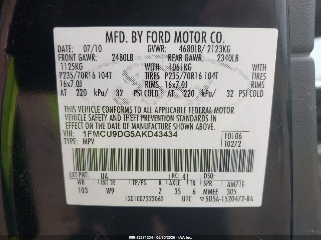 FairThis is a black 2010 Ford Escape XLT, with significant front-end collision damage. The front bumper, grille, and possibly other front-end components require replacement. The interior appears to be in relatively good condition.