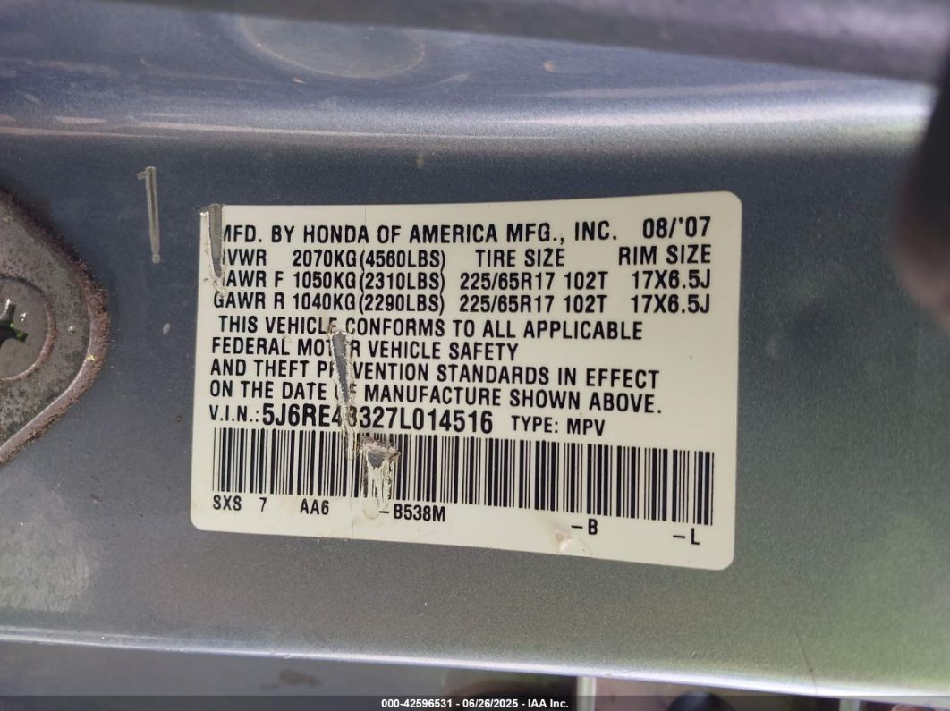 FairThis is a 2007 Honda CR-V LX, light blue in color, with an overall fair condition. The car has body damage throughout and some interior wear. It is a Run & Drive Verified vehicle. The vehicle's condition suggests it needs repairs to the body panels and some cosmetic work. The interior appears to be in reasonable condition given the age and mileage.
