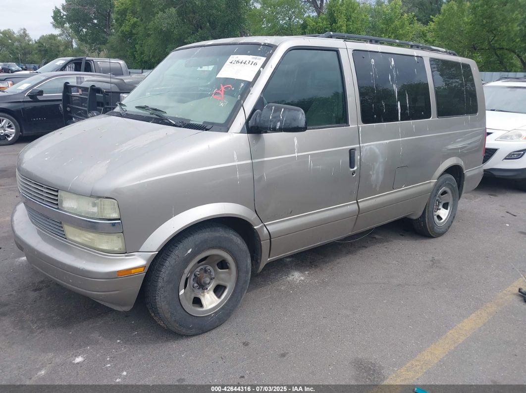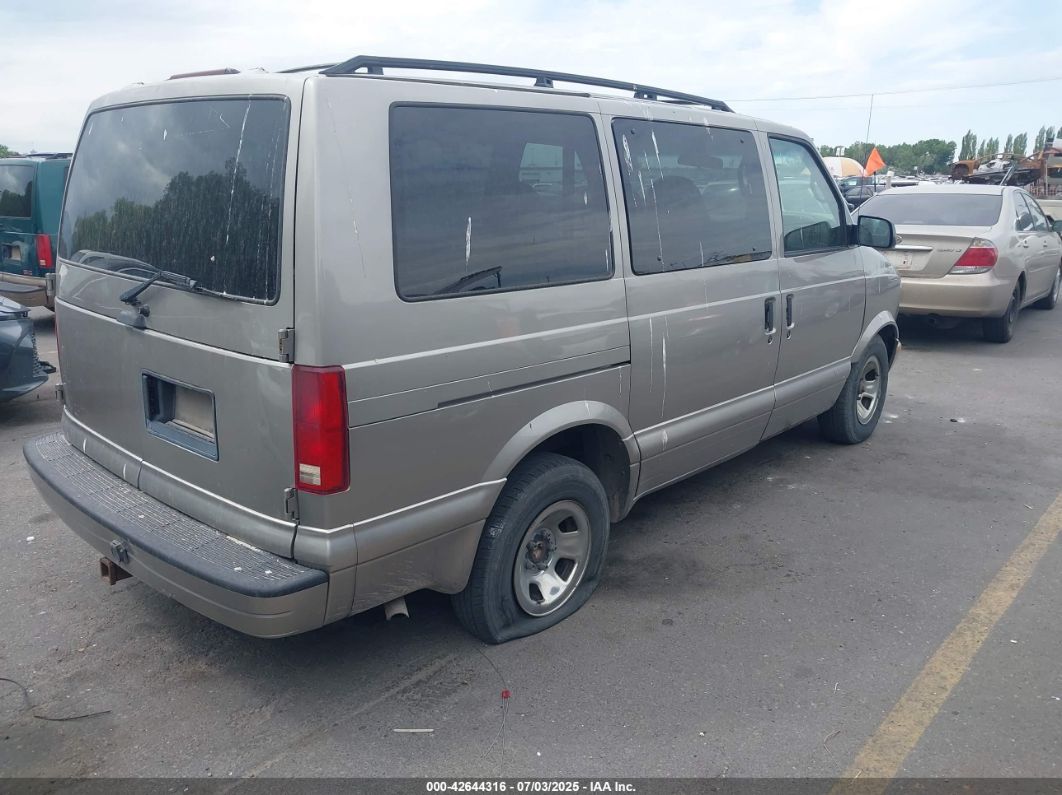 Good2002 CHEVROLET ASTRO LS, gold-colored van, showing evidence of right-side damage and some other damages, run and drive verified. It presents a moderate state of wear and tear. The vehicle's exterior displays cosmetic and body damages, but the interior is in good condition. The wheels and lights appear to be intact. The glasses have some scratches.