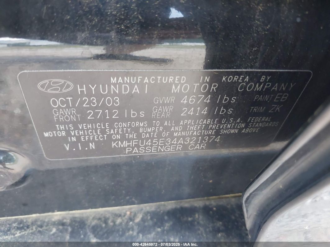 KMHFU45E34A321374Final Bid