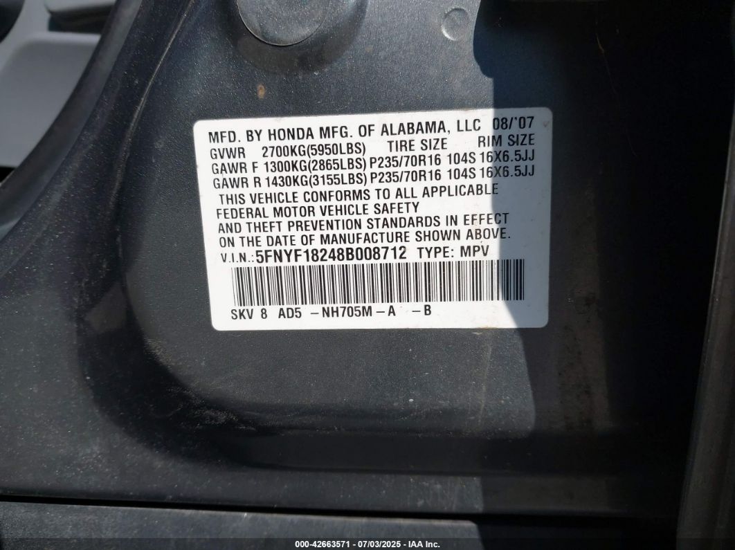 GoodThe 2008 Honda Pilot VP is a gray SUV. The vehicle's exterior shows signs of wear, with the primary damage described as 'All Over' and secondary damage categorized as 'Other'. The vehicle's condition is 'Run & Drive Verified'. The lights and glasses appear to be intact, and the wheels are fine. The interior shows visible damage, and the airbags status is unknown.