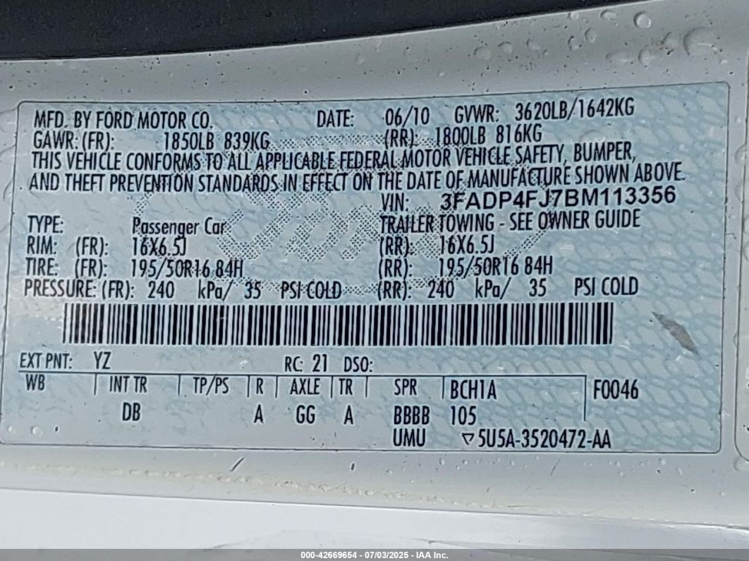 FairThe 2011 Ford Fiesta SES is a white hatchback with notable damage. The primary damage is on the right side, with secondary damage elsewhere on the body. The car is reported as Run & Drive Verified, indicating it's drivable despite the body damage. The overall state is Fair, reflecting the visible body damage. The interior condition is rated Good, with minimal wear and tear. The exterior condition is also rated Fair due to the damage. This Fiesta presents an opportunity for repair or parts, considering the body damage and its drivable status. It has a cosmetic and body damages. Damage to lights and glasses are not visible.