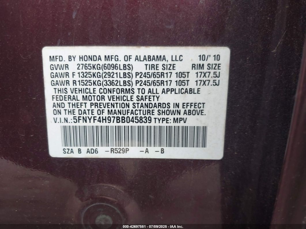 FairThis is a 2011 HONDA PILOT TOURING in red, with Run & Drive Verified status. The vehicle shows front-end damage and secondary damage described as Other. The overall exterior condition is rated as Fair due to moderate visible damage. The interior is in Good condition.