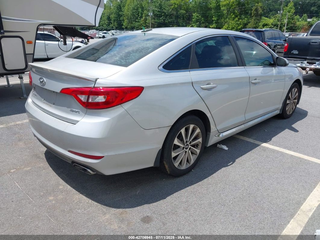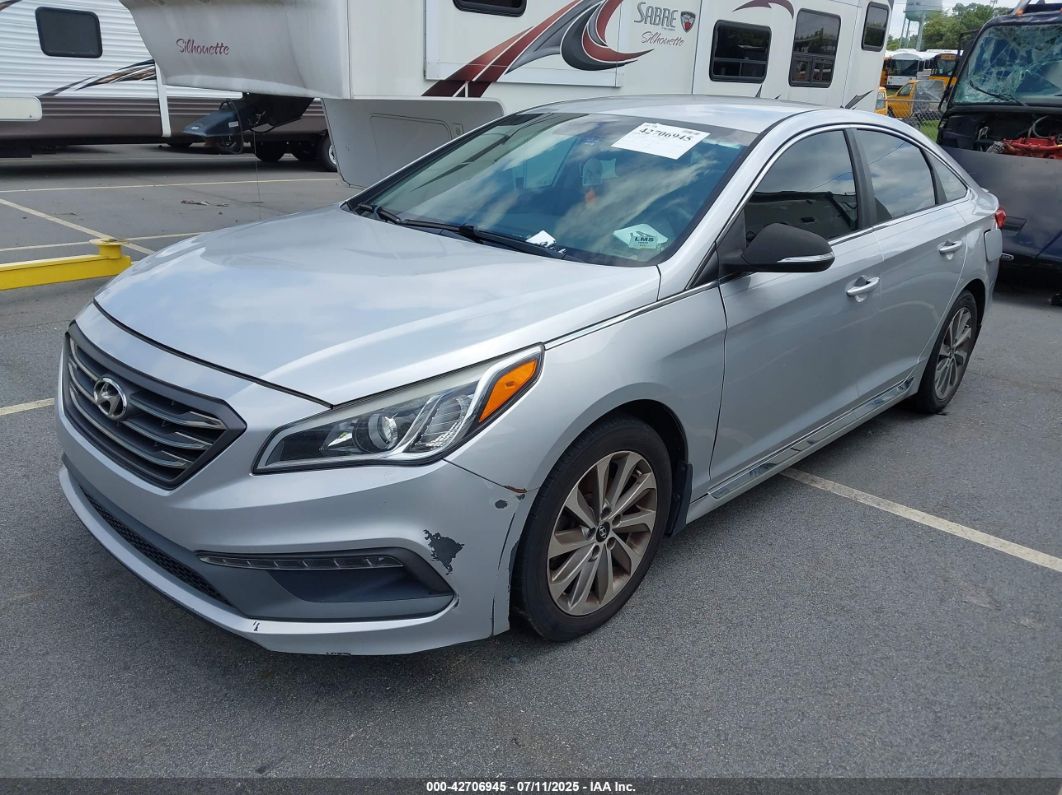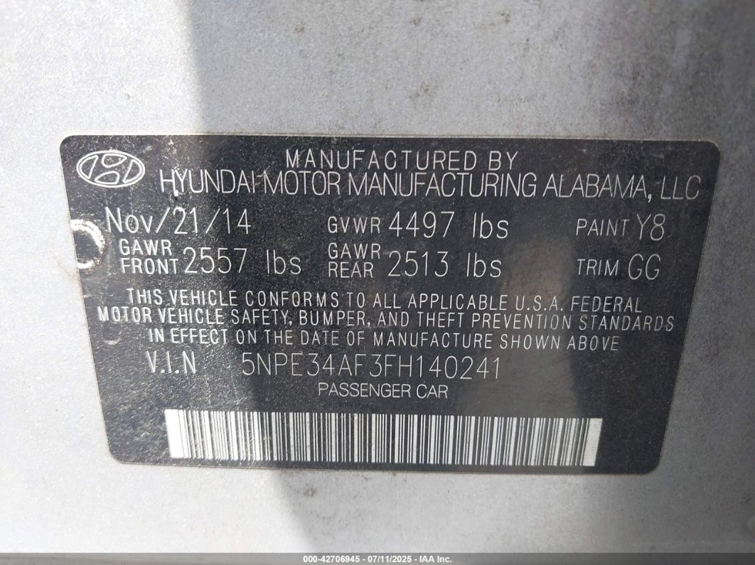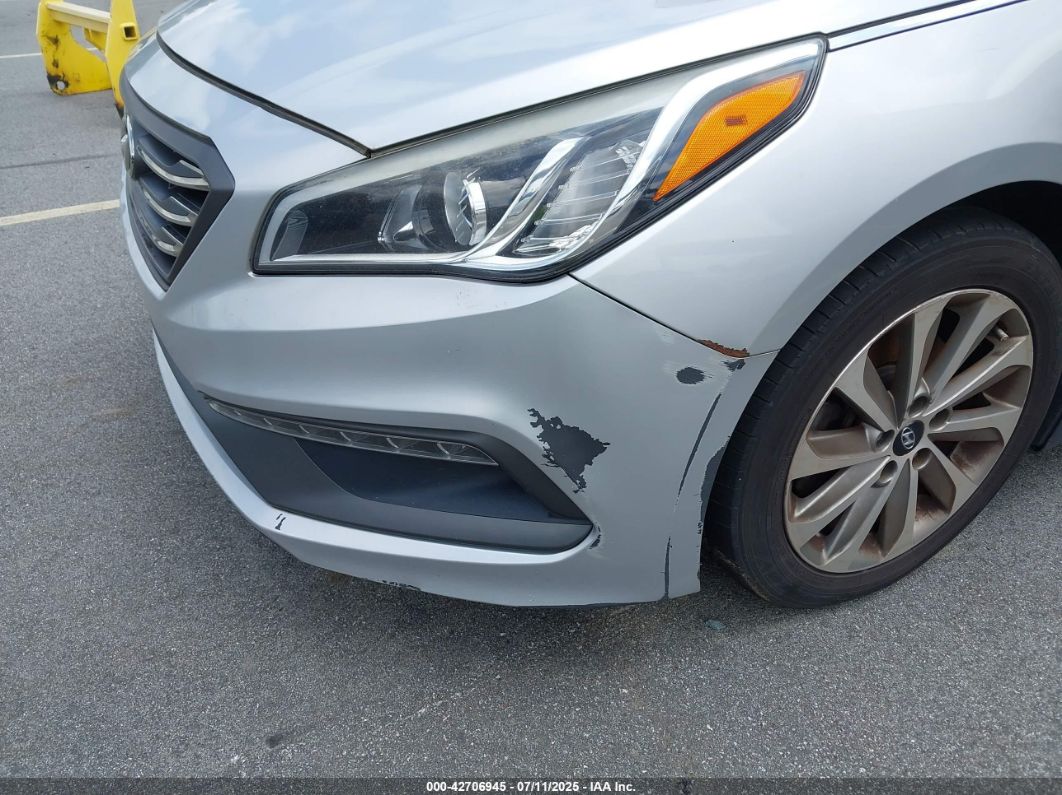 FairThis 2015 Hyundai Sonata Sport, gray in color, exhibits signs of wear and tear, primarily categorized as body damage. The car is confirmed to Run & Drive Verified, indicating operational functionality despite the cosmetic and body imperfections. The vehicle shows some signs of impact and cosmetic damage on the exterior. The wheels appear to be in decent condition. The interior shows some wear consistent with its age and mileage.