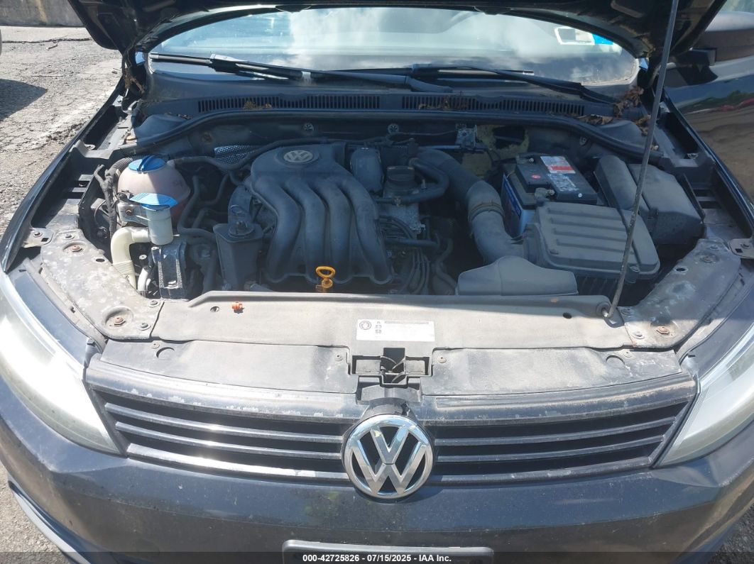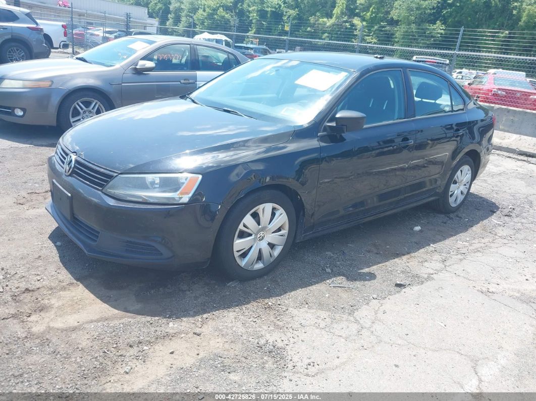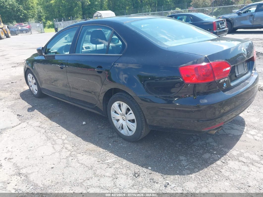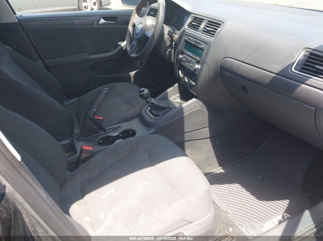 Fair2012 VOLKSWAGEN JETTA 2.0L S. This black sedan exhibits damage primarily on the left and right sides, with secondary damages present. The vehicle starts and runs, confirmed by Run & Drive Verified. Interior condition is rated as Good. The car is drivable, even with the damage. The glass and lights appear to be intact.
