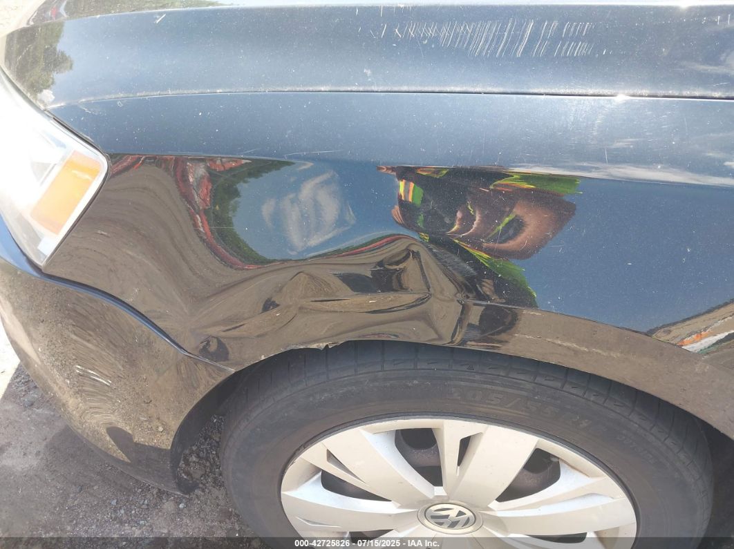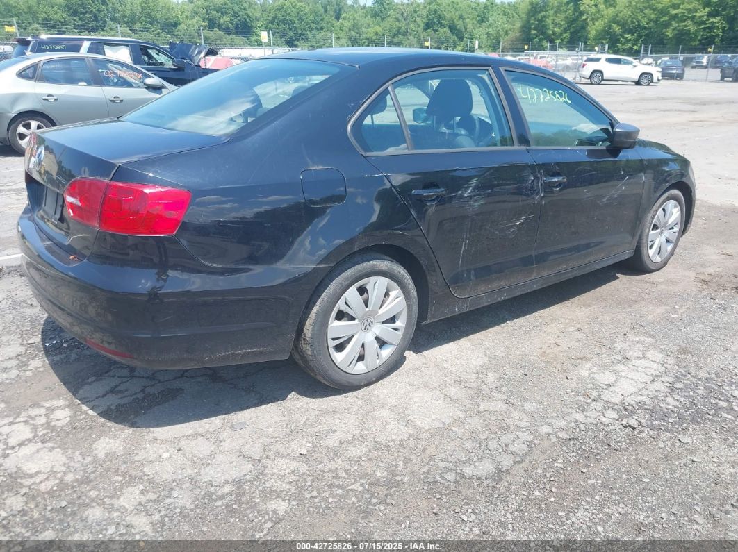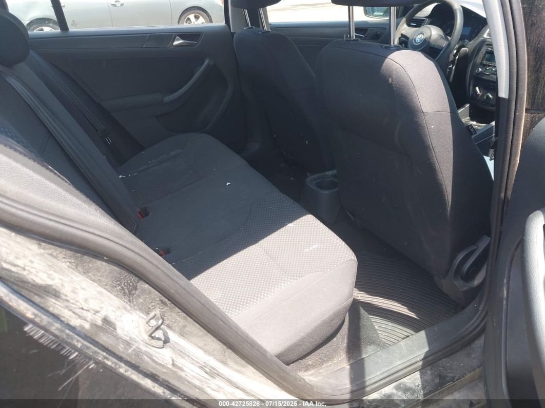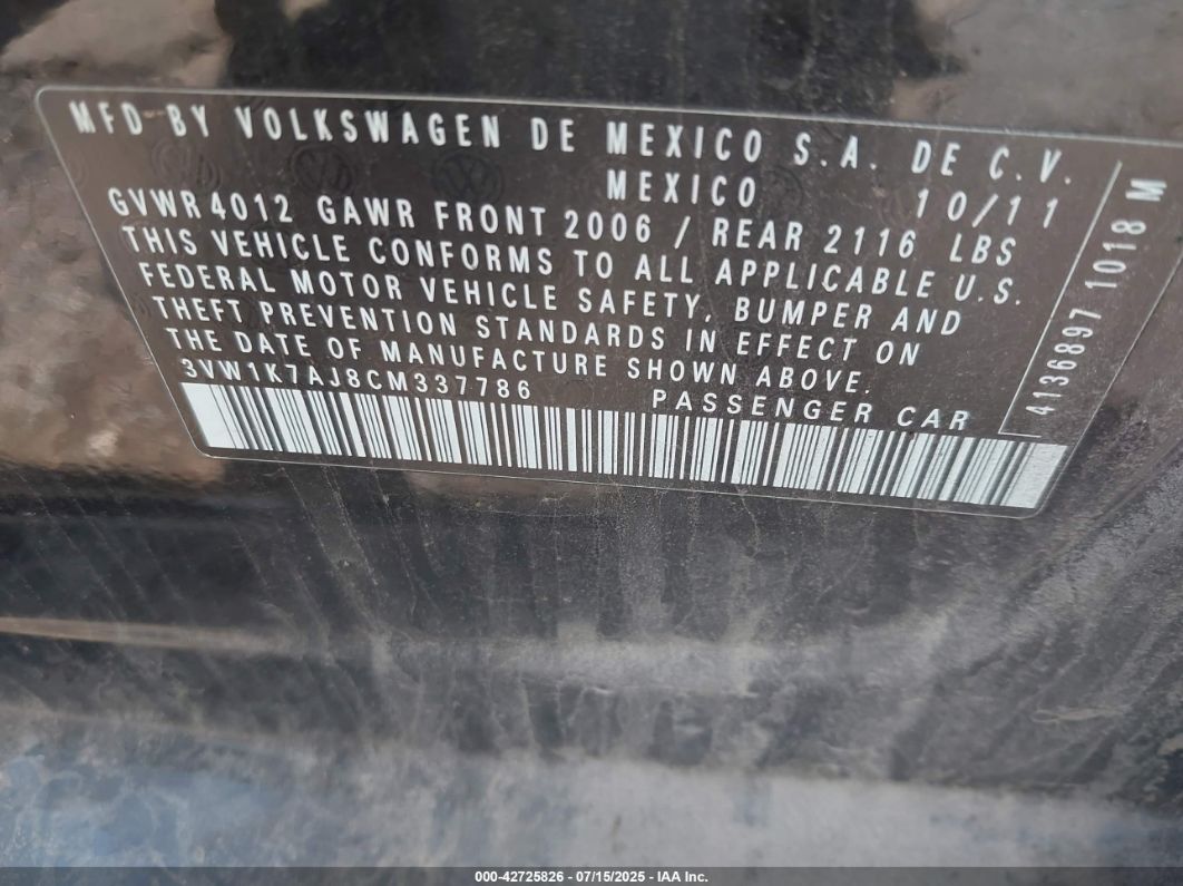 Fair2012 VOLKSWAGEN JETTA 2.0L S. This black sedan exhibits damage primarily on the left and right sides, with secondary damages present. The vehicle starts and runs, confirmed by Run & Drive Verified. Interior condition is rated as Good. The car is drivable, even with the damage. The glass and lights appear to be intact.