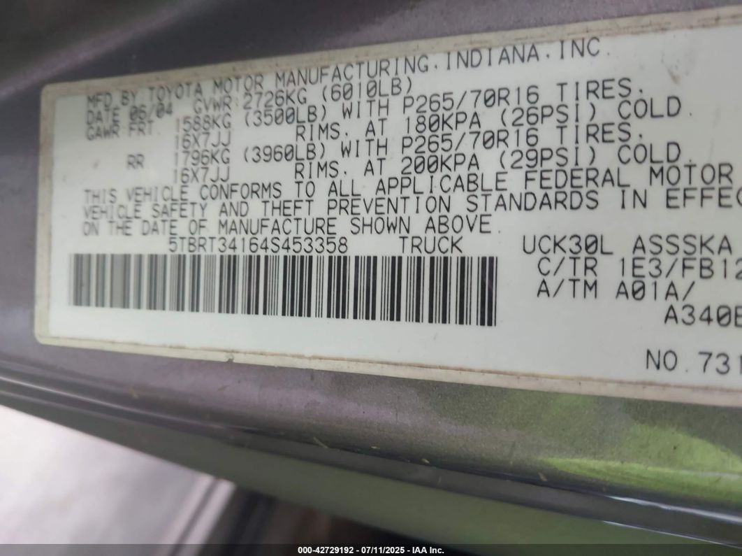 FairThe 2004 Toyota Tundra SR5 V8, a gray pickup truck, shows front and rear damage, categorized as Body damage. The vehicle starts and drives, indicated by the 'Run & Drive Verified' code. Visible damage includes body panel damage, and other minor issues affecting the overall appearance.