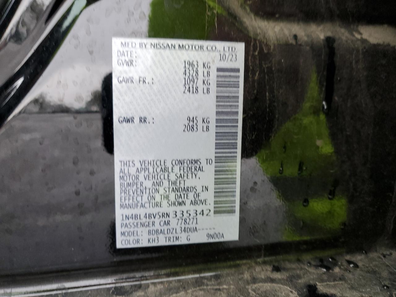 FairThe 2024 Nissan Altima S, presented in black, exhibits significant damage. The primary damage is to the rear end, with secondary damage to the front end, suggesting a collision. The overall exterior condition is rated as Fair, due to the body panel damage. The interior shows less impact, with a rating of Good. The car's overall state is also Fair, indicating the need for repairs. Visible damages include severe rear-end impact, front-end damage, potential glass damage, and possible airbag deployment. Additional elements like wheels and lights show less signs of damage.