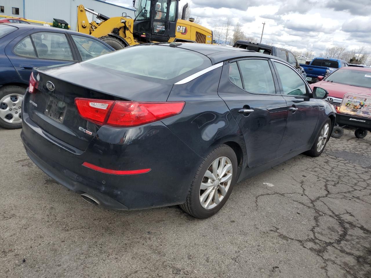 The KIA OPTIMA EX 2015 shows significant damage, with visible frame damage. The car's exterior condition is affected, but the interior condition is still relatively good. Check for potential airbag deployment, interior damage and body.