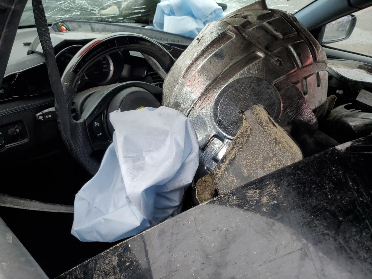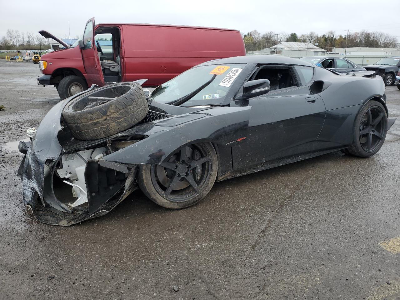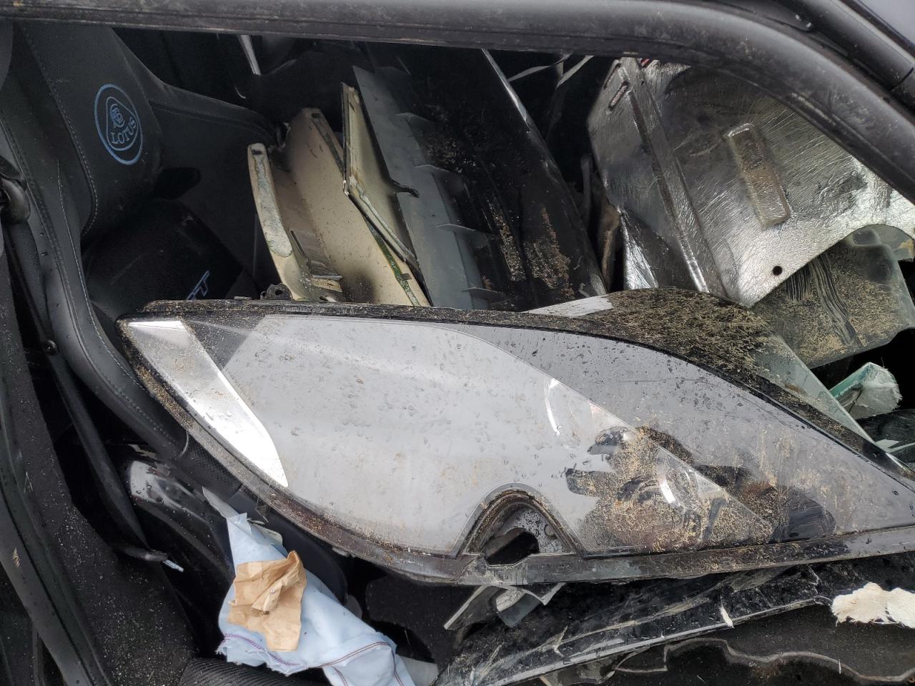 PoorThe 2021 Lotus Evora GT, a sleek black sports car, has sustained significant damage in a collision. The front end is extensively damaged, with the bumper, hood, and front panels severely impacted. The rear end also shows substantial damage. The wheels appear to be intact despite the impact. Interior damage includes deployed airbags. The vehicle's current state indicates a need for major repairs.