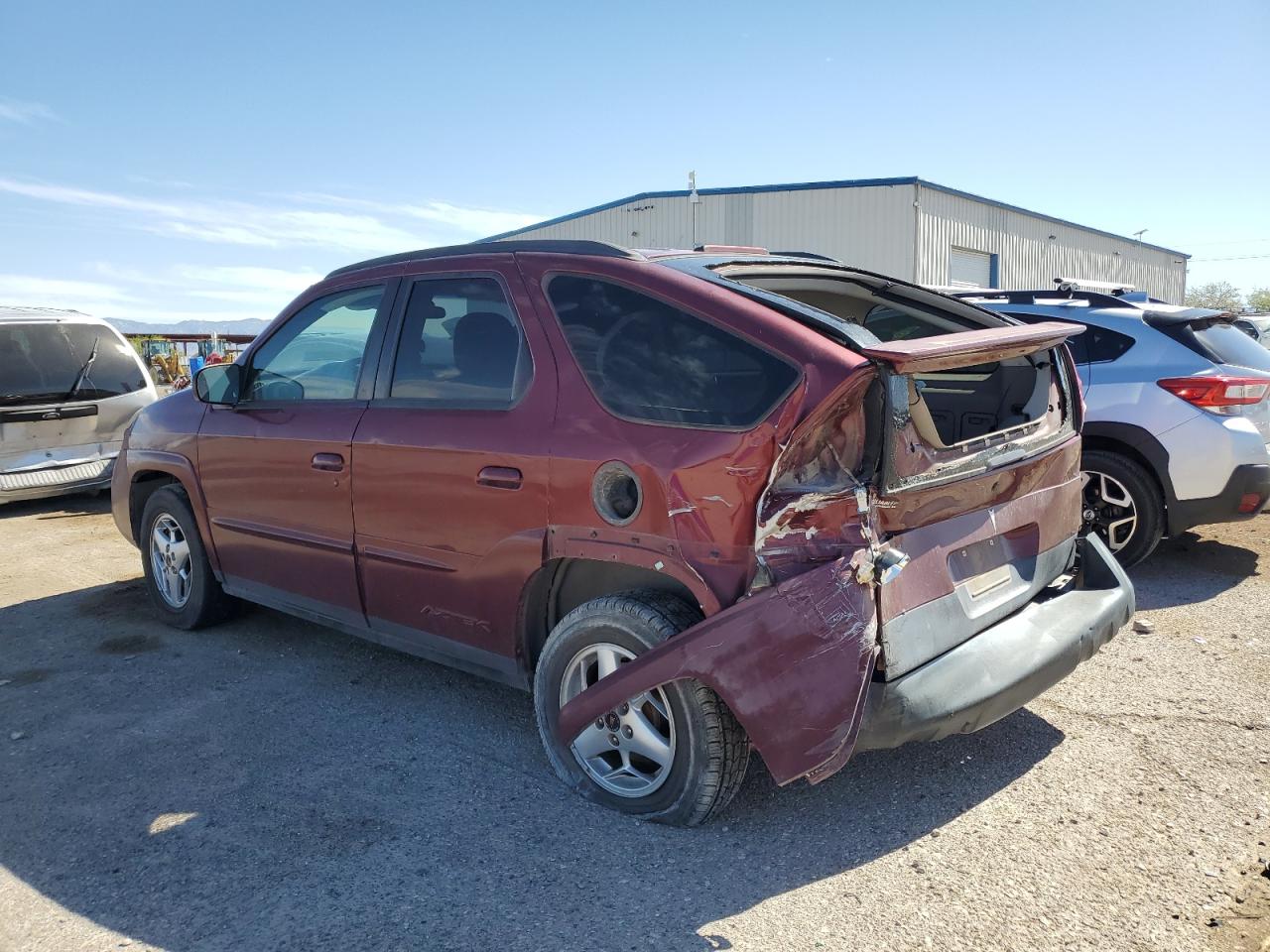 FairThis is a maroon 2004 Pontiac Aztek with rear-end damage, the start code is 'Run & Drive Verified'. The vehicle's exterior condition is Fair, with visible damage, including a crushed rear. The interior condition is Good, with some wear and tear. The Aztek showcases a unique design, known for its practicality and distinctive appearance. Despite its condition, the car is drivable.