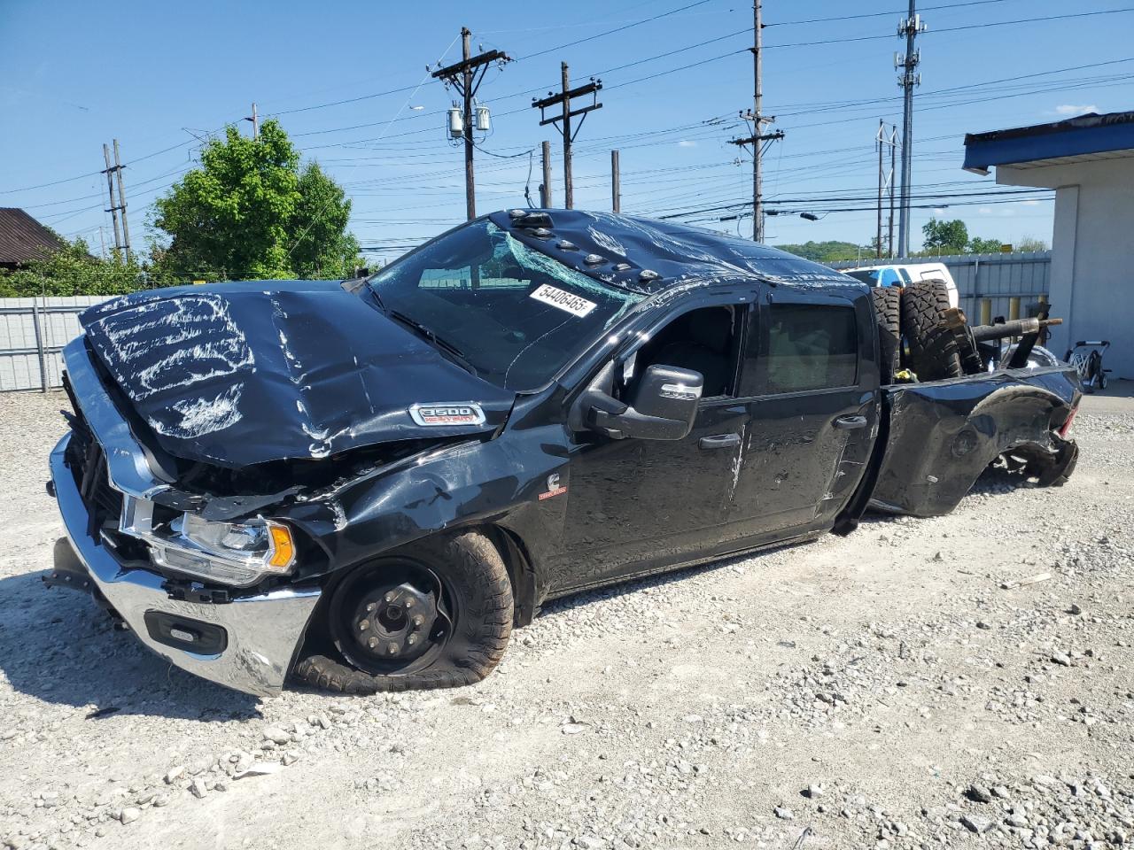 PoorThe black RAM 3500 TRADE 2024 has sustained severe damage, primarily from a rollover. The exterior condition is poor, with significant body damage visible. The interior condition is fair, with some damage present. The vehicle is likely not drivable and requires considerable repair.