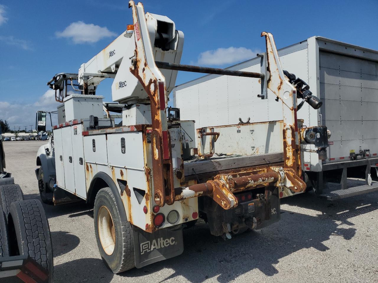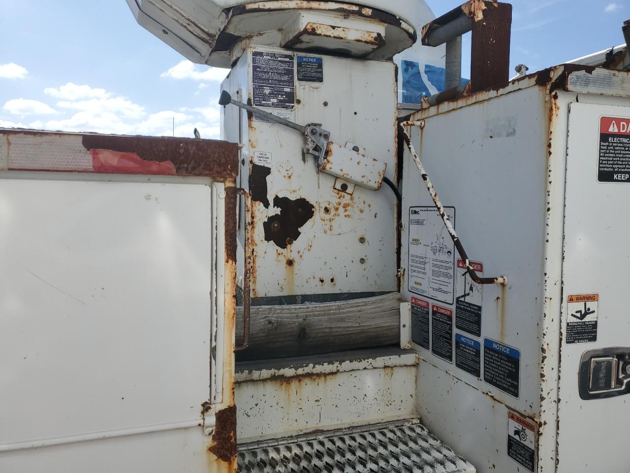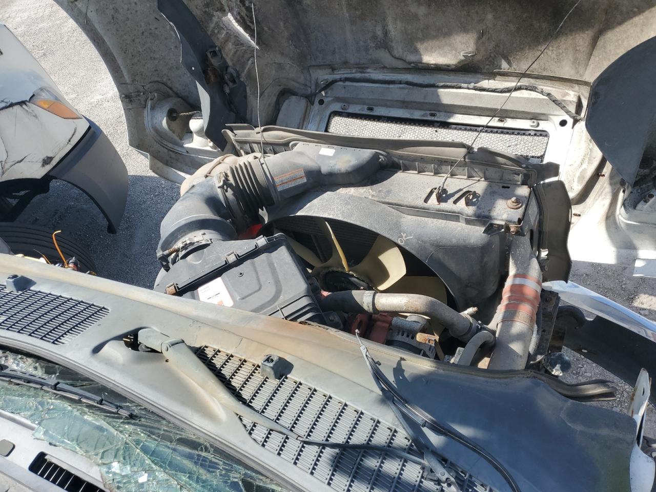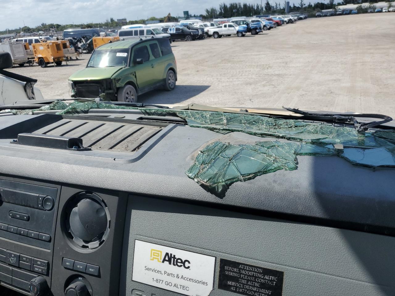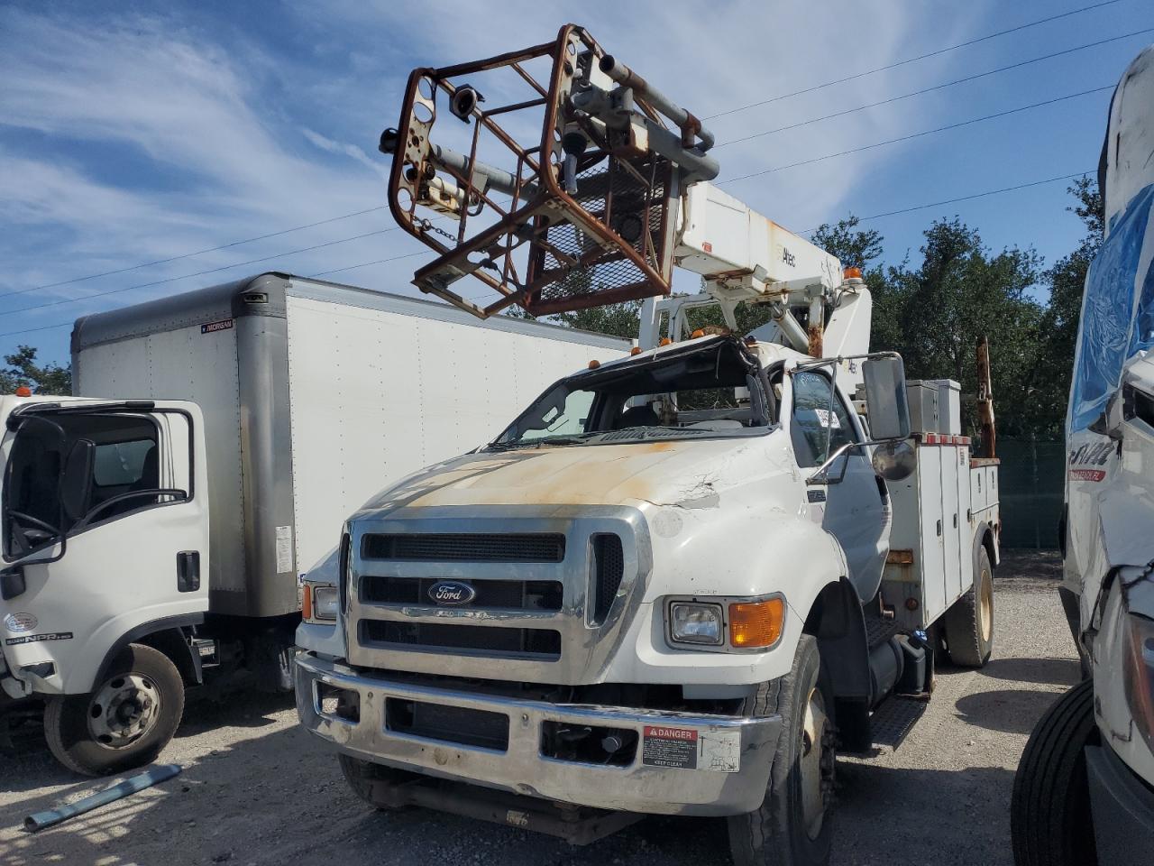 FairThe 2015 Ford F750 Super Duty is extensively damaged. The primary damage is to the top and roof, with secondary damage to the side. The vehicle's white exterior shows significant wear and tear. The windshield is shattered, and the cab appears heavily impacted. The wheels appear to be present, though the overall state of the vehicle suggests they may be damaged. The lights are present. The interior damage is visible as well and it appears that the airbags were deployed.