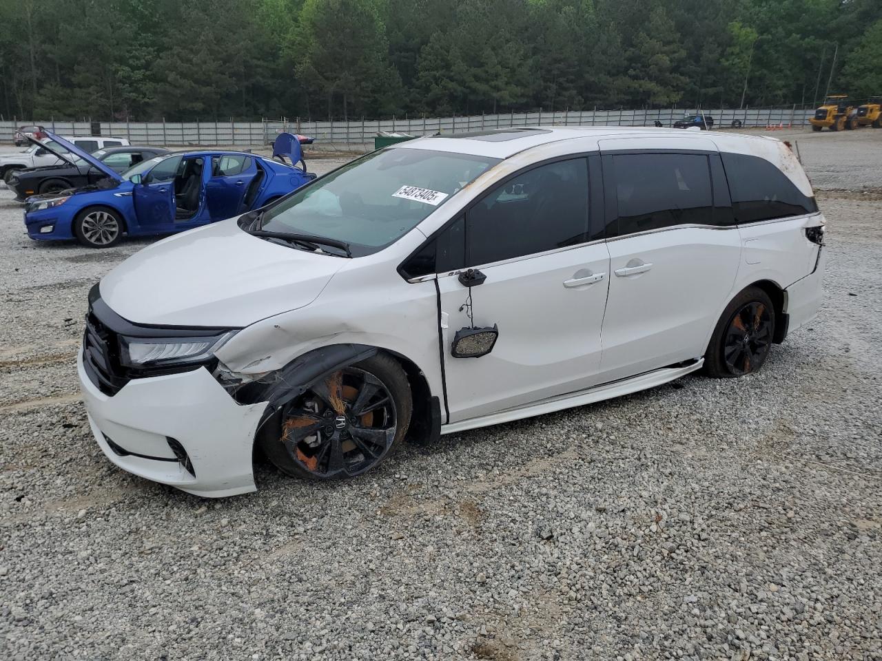 FairThe white 2024 HONDA ODYSSEY SP exhibits extensive damage. The vehicle has sustained severe damage to its body panels, as well as significant structural damage, indicating a major accident. The front and rear of the car show significant impacts, with the roof, windows, and side panels severely compromised. The wheels appear damaged and inoperable, and the headlights are affected. Interior damage includes deployed airbags and visible damage throughout the cabin. The car's start code is "Vehicle Starts".