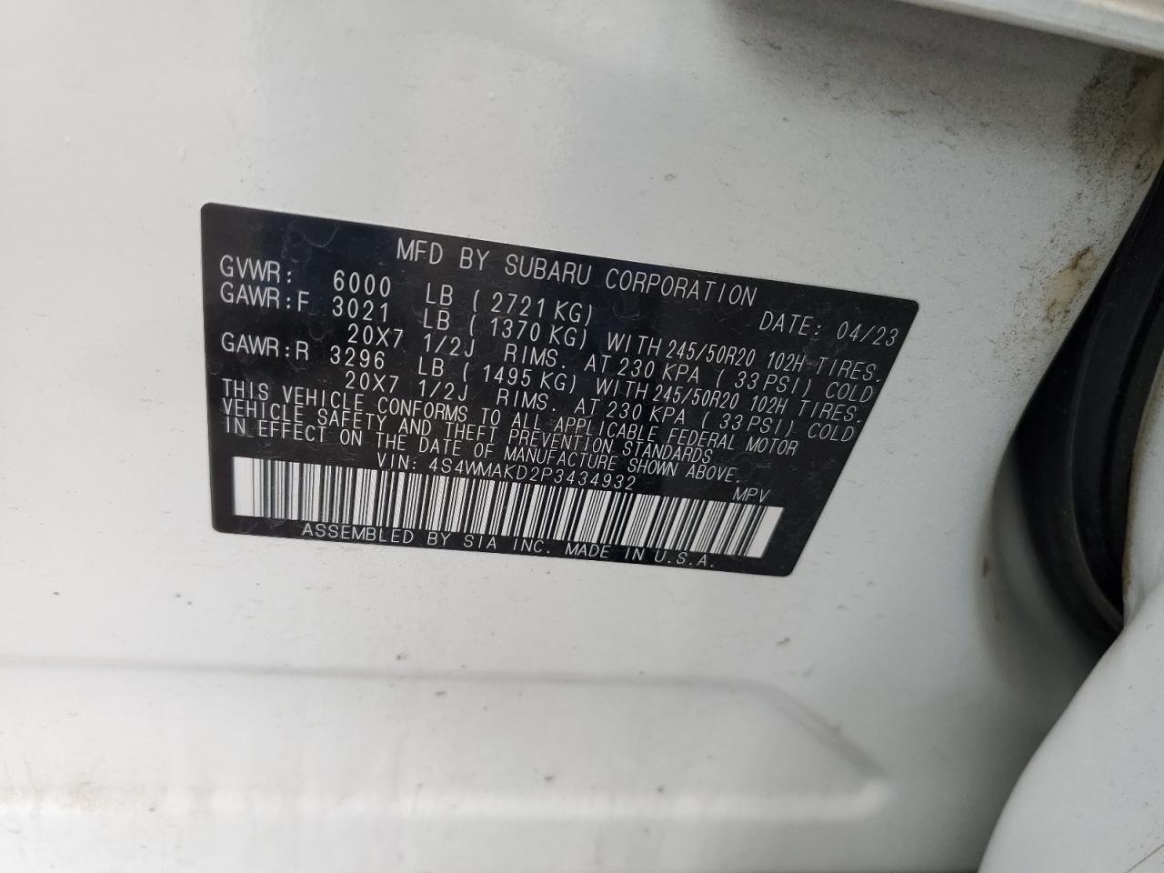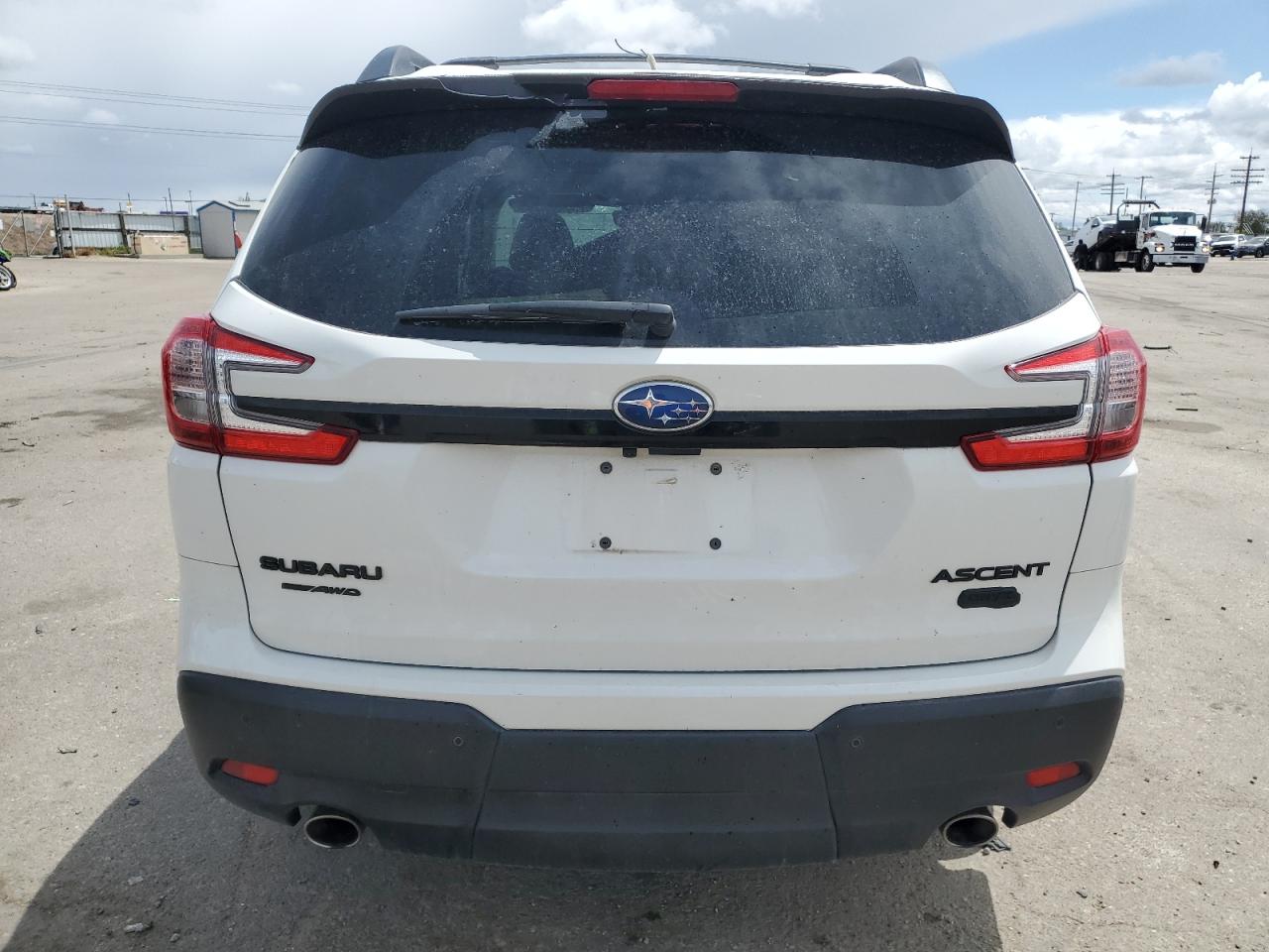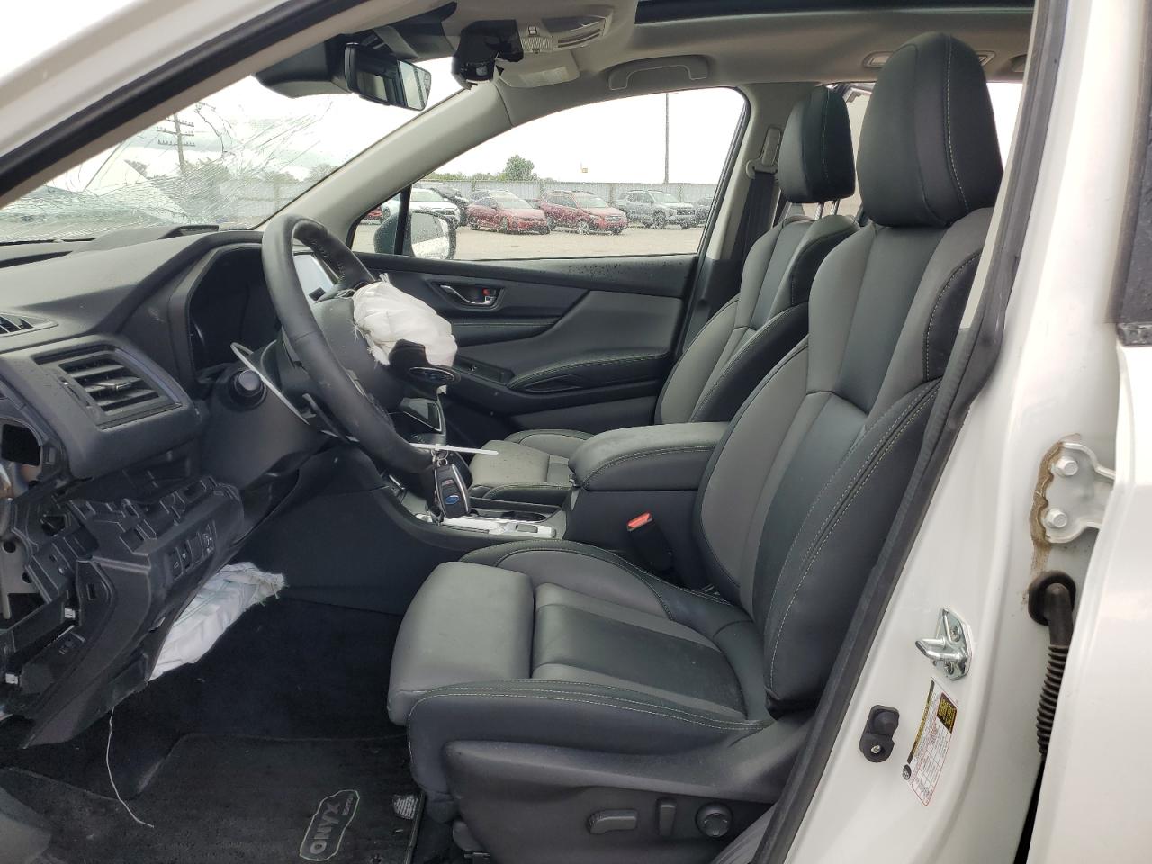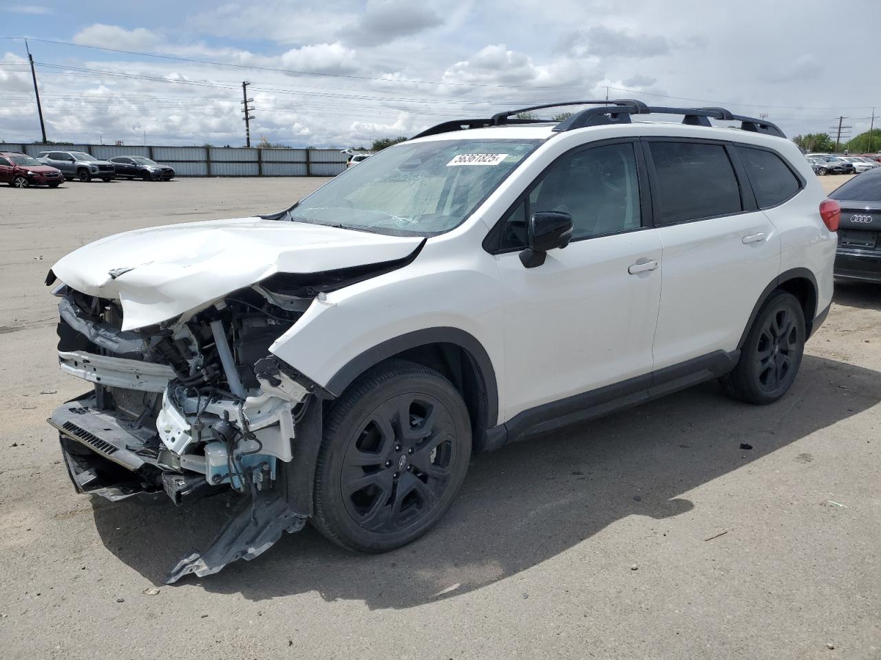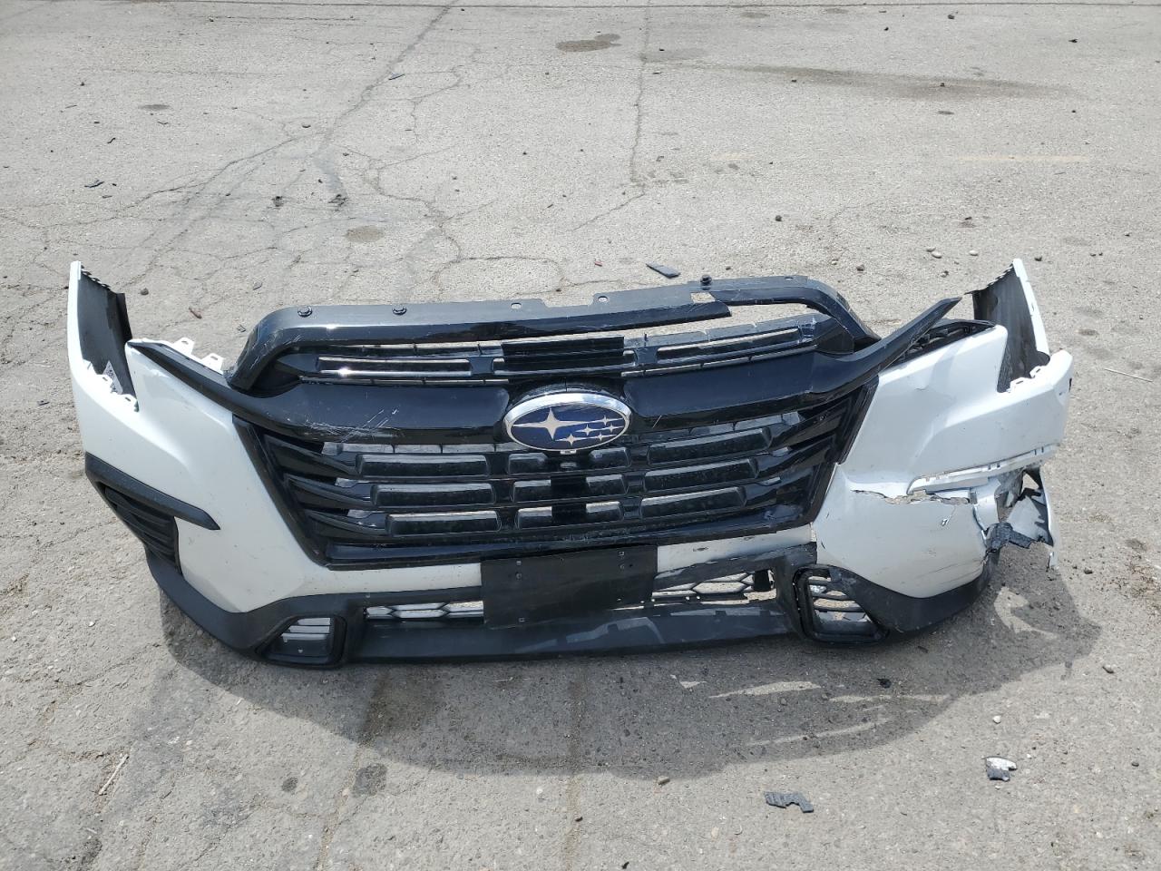FairThis white 2023 SUBARU ASCENT LIM has significant front-end damage, indicating a mechanical issue as well. The vehicle's front is severely compromised. The interior shows signs of wear, particularly with deployed airbags. The wheels and glasses appear to be intact. The car has a 'Run & Drive Verified' start code.