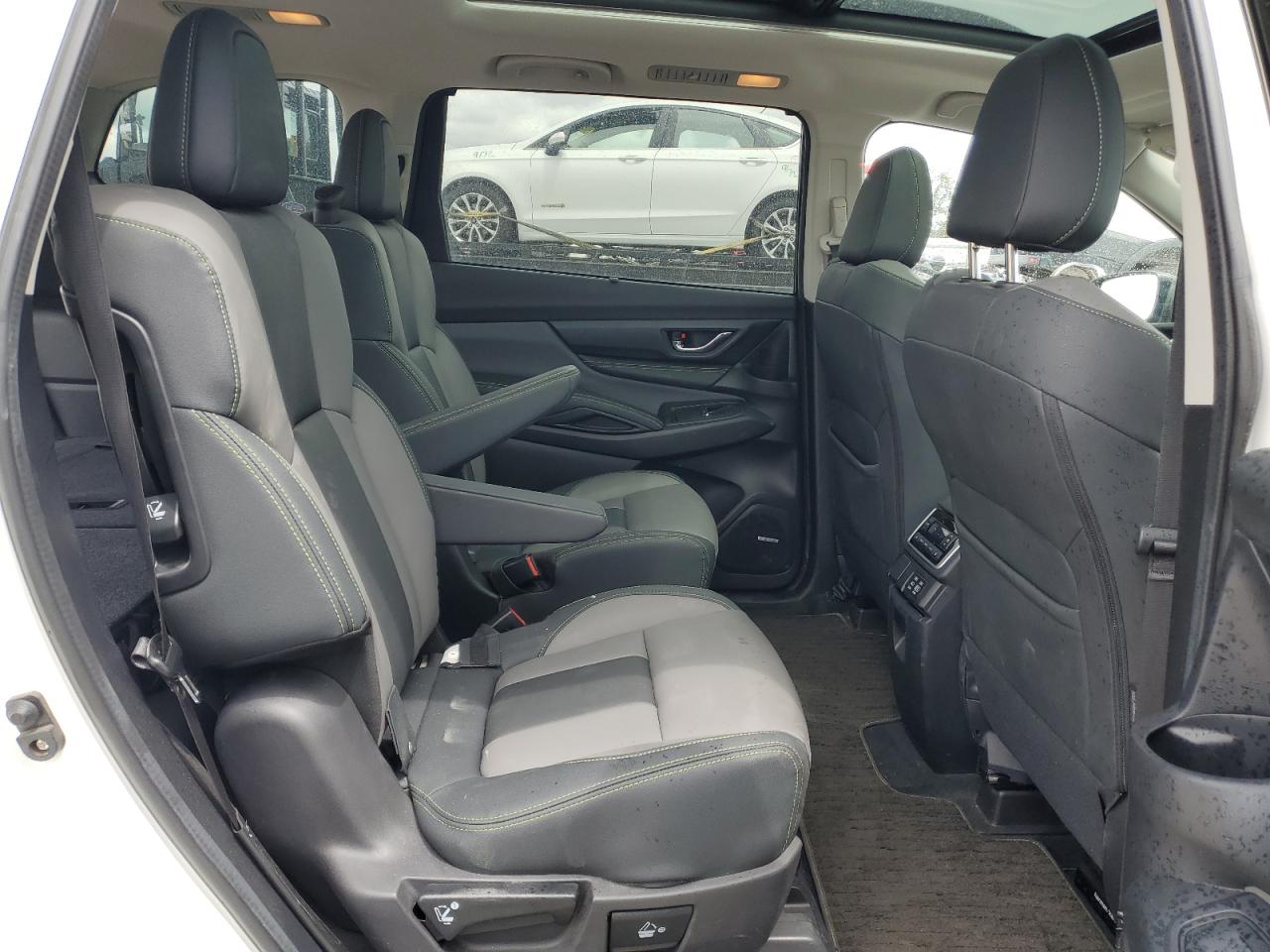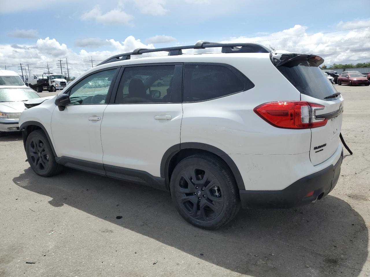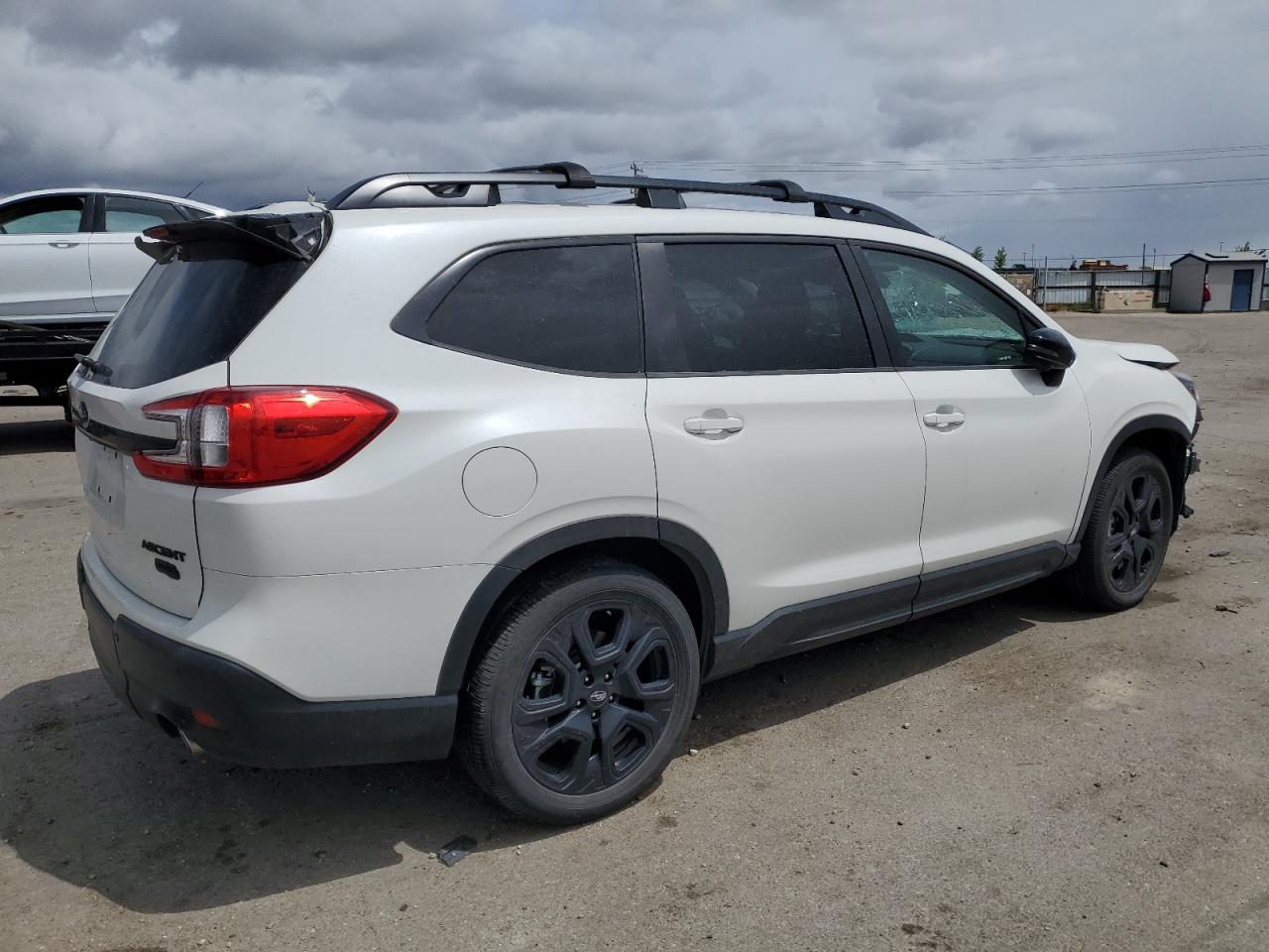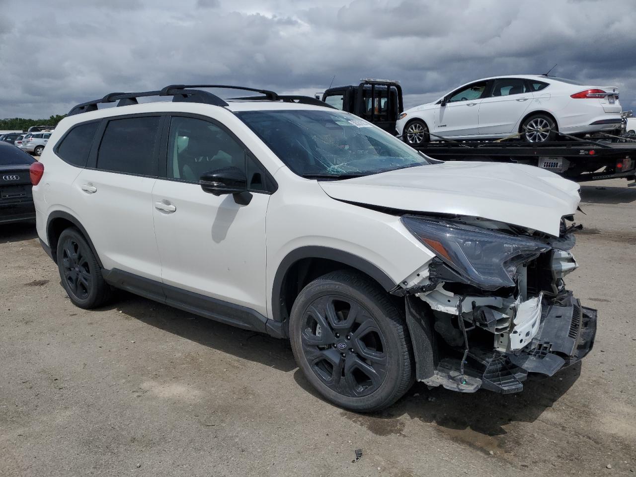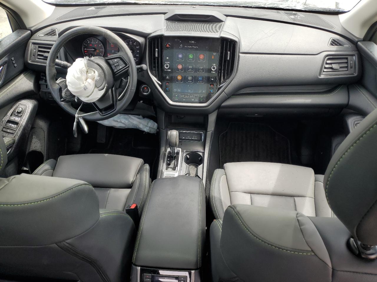 FairThis white 2023 SUBARU ASCENT LIM has significant front-end damage, indicating a mechanical issue as well. The vehicle's front is severely compromised. The interior shows signs of wear, particularly with deployed airbags. The wheels and glasses appear to be intact. The car has a 'Run & Drive Verified' start code.