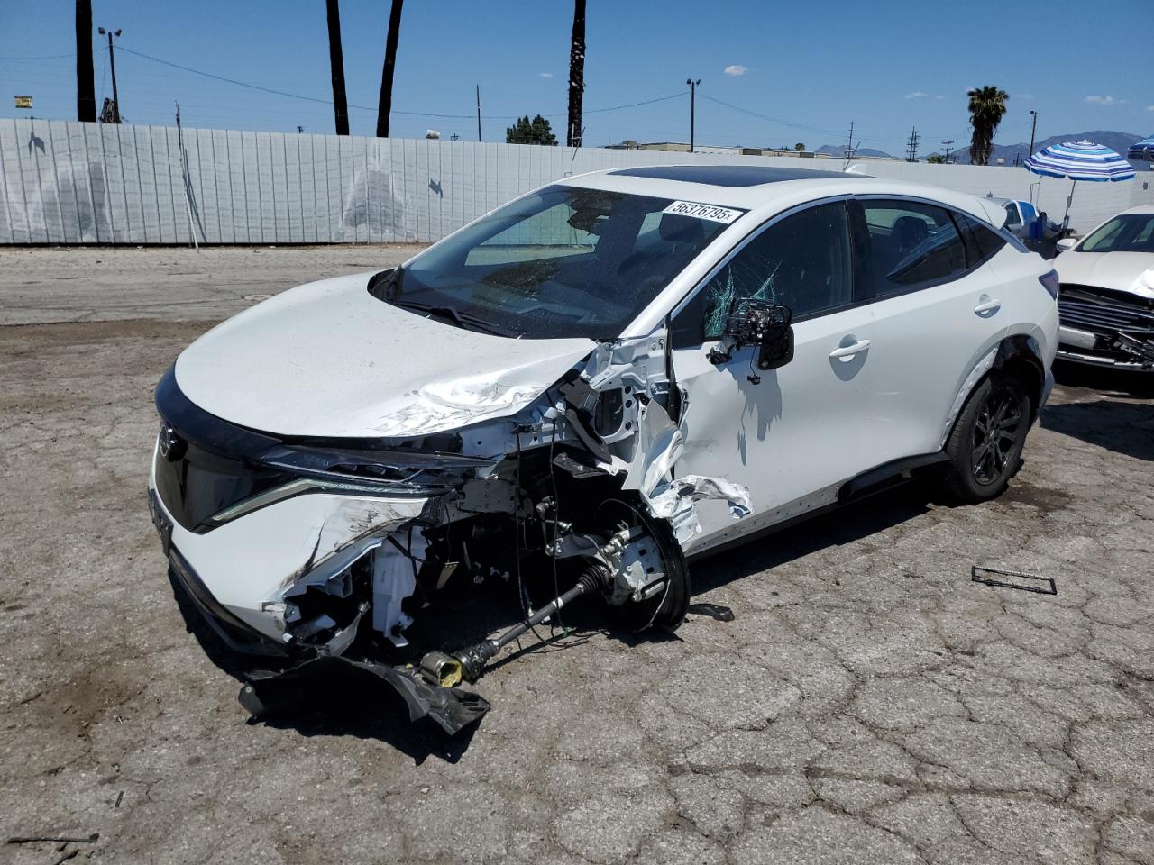 FairThis is a white 2024 NISSAN ARIYA EVOL with front end and side damage. The vehicle starts. The car exhibits significant damage to the front end, with visible damage to the front panels, bumper, and lights. The side of the vehicle also shows damage. The wheels appear to be intact. The interior shows no damage to the seats or console. The airbags did not deploy.