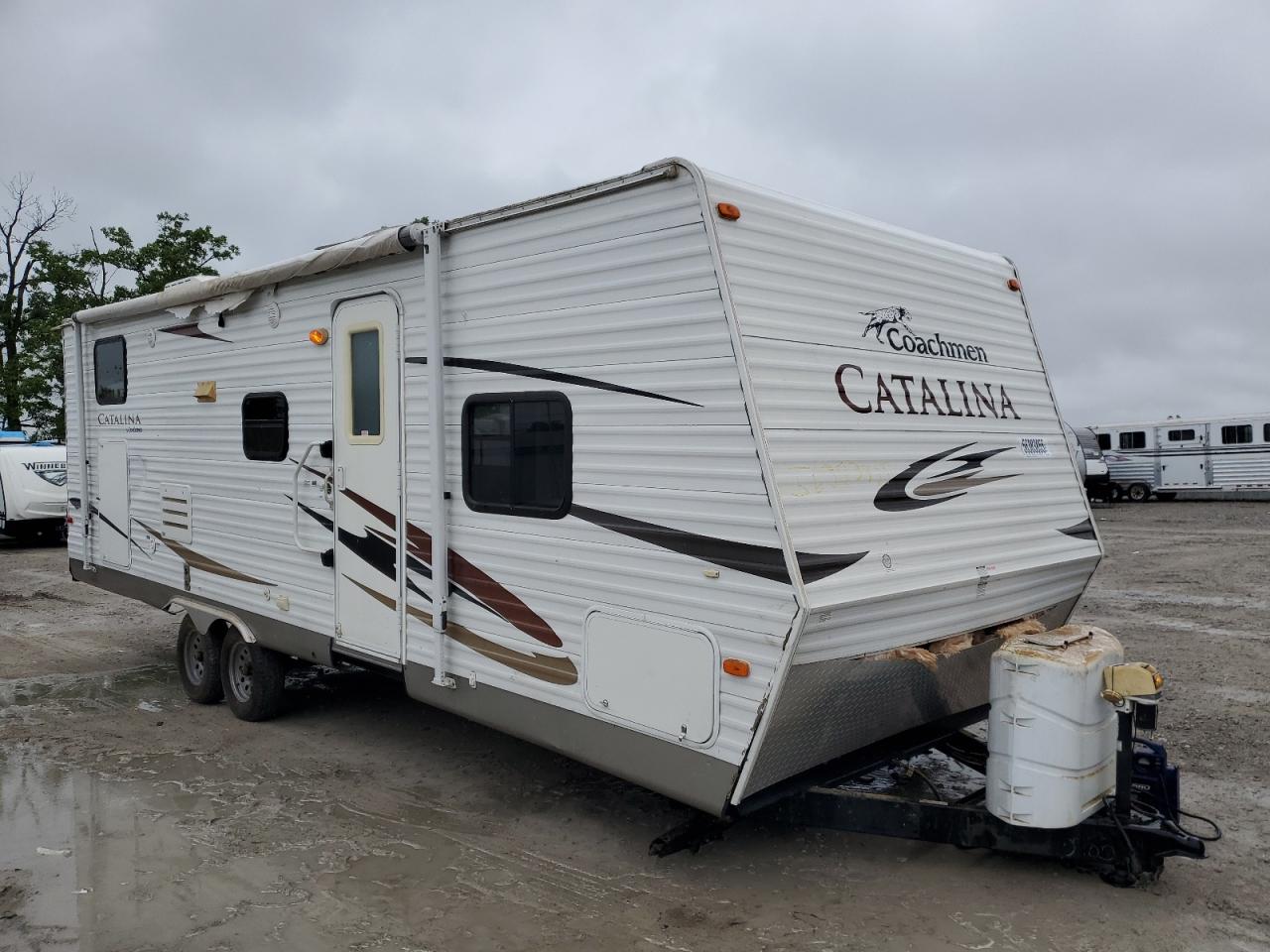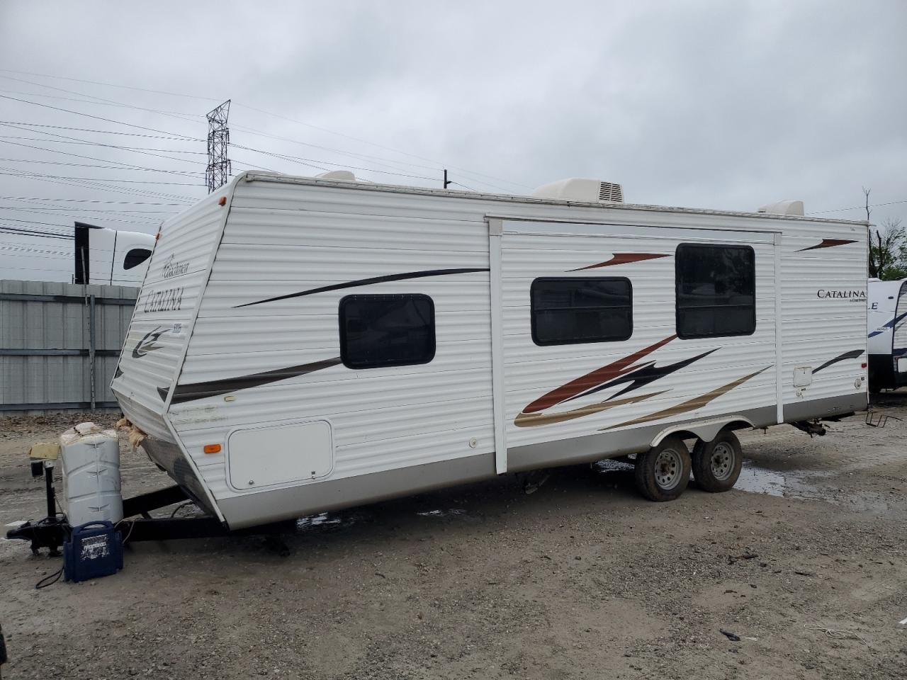 FairThe 2013 WILDWOOD CATALINA RV has sustained significant water/flood damage throughout, impacting both the exterior and interior. The white-colored RV shows signs of widespread damage, with the body panels affected, indicating a Body-type Vehicle Damage Category. Interior damage is present, with no specific information on airbags. Wheels, lights, and glasses are not specifically mentioned, but given the overall damage, they are likely affected as well. The RV requires considerable repair to become drivable.