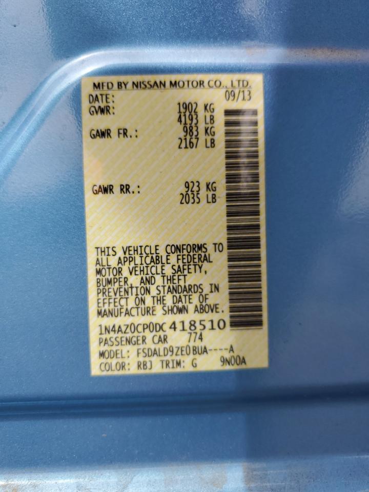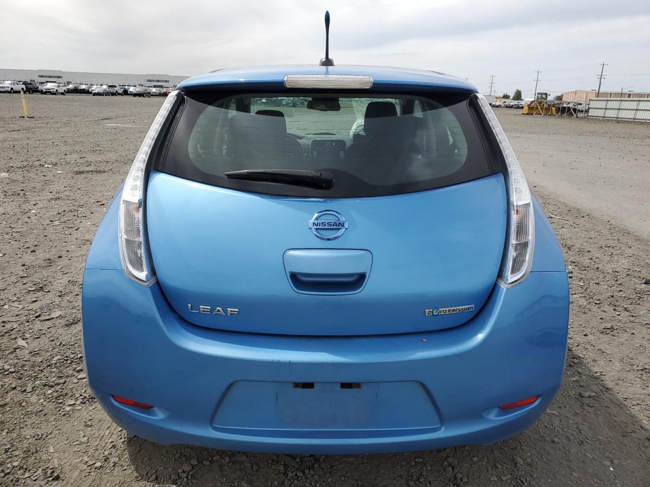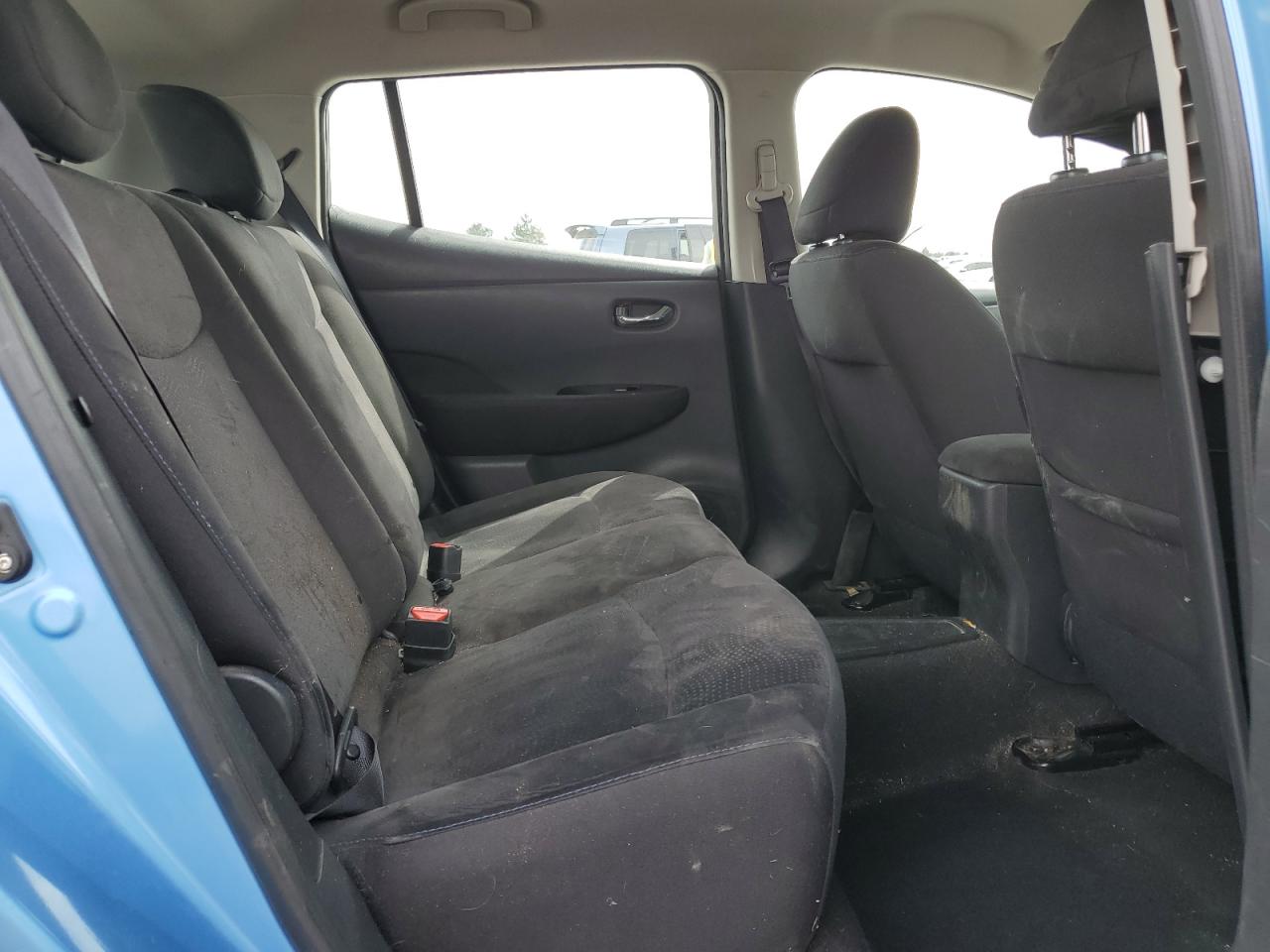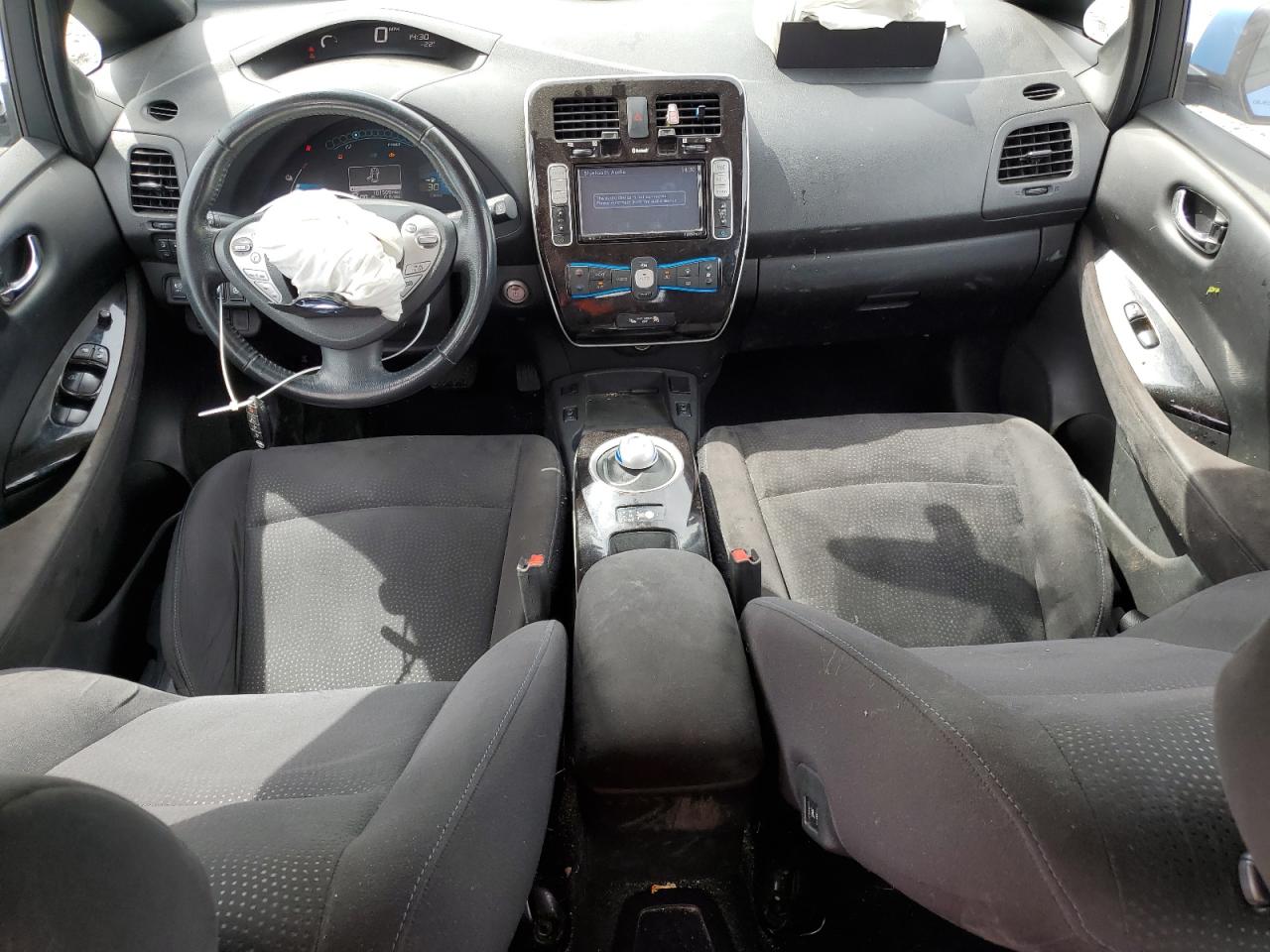 FairThis is a 2013 NISSAN LEAF S. The car is blue and has sustained front-end damage in a collision. The airbags deployed during the accident. The vehicle starts and runs, as indicated by the 'Run & Drive Verified' status. The interior shows some wear and tear, consistent with the age and mileage. The glass appears to be intact, and the wheels are in good condition. The car itself is an all-electric compact hatchback, known for its efficiency and eco-friendly nature.
