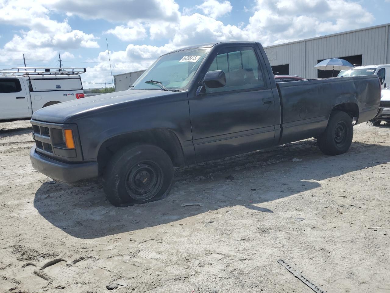 FairThis 1993 Chevrolet GMT-400 C1 has suffered from vandalism and rear-end damage, evident in the multiple views presented. The black paint is visibly affected, and the vehicle's interior shows signs of wear, with potentially significant damage. The overall state reflects the need for considerable repairs to restore the vehicle. The vehicle is drivable