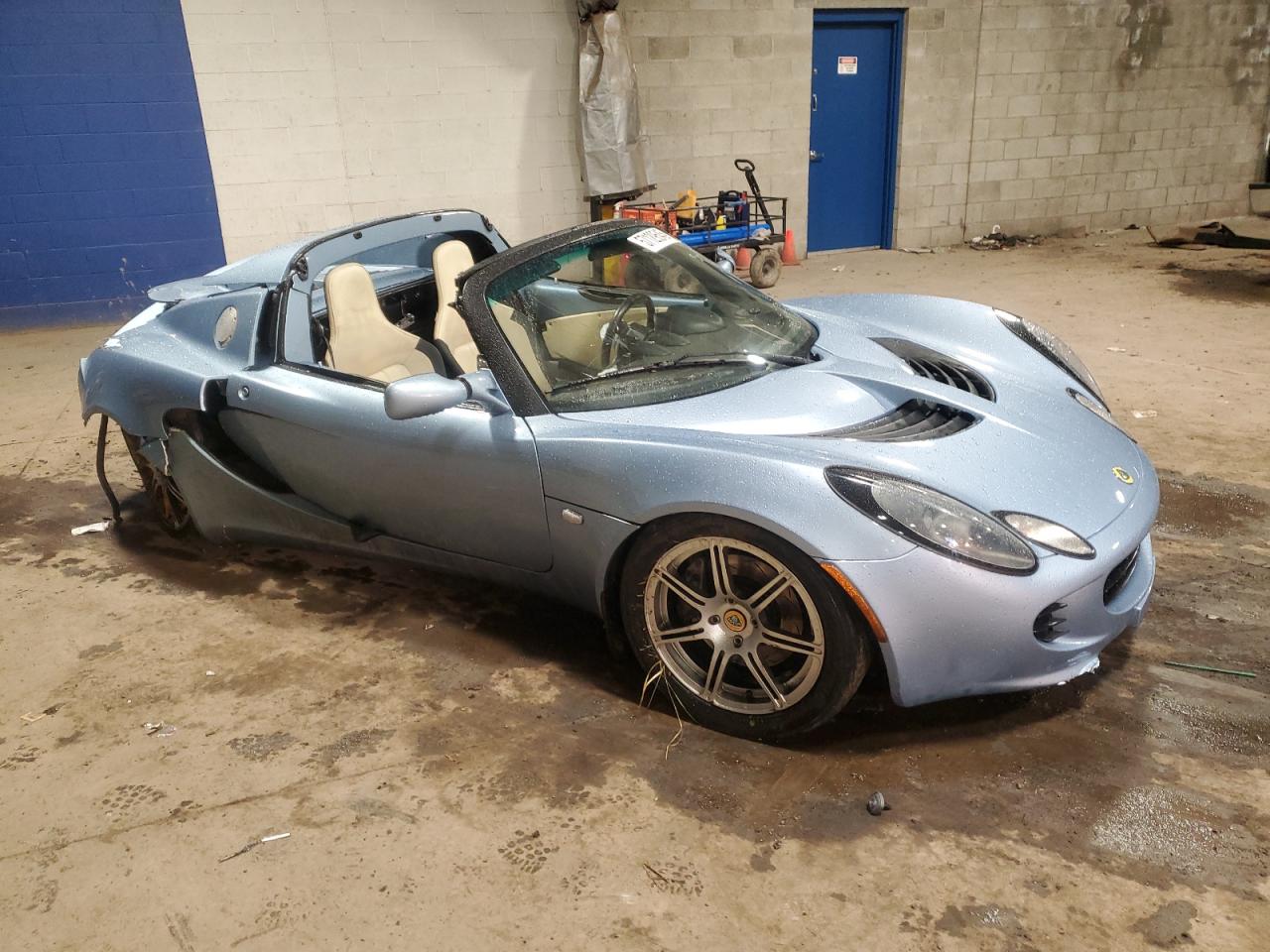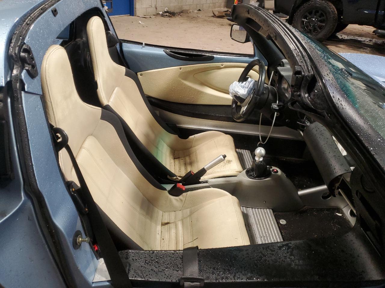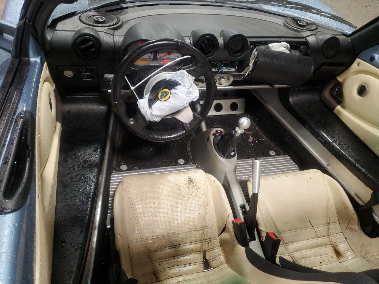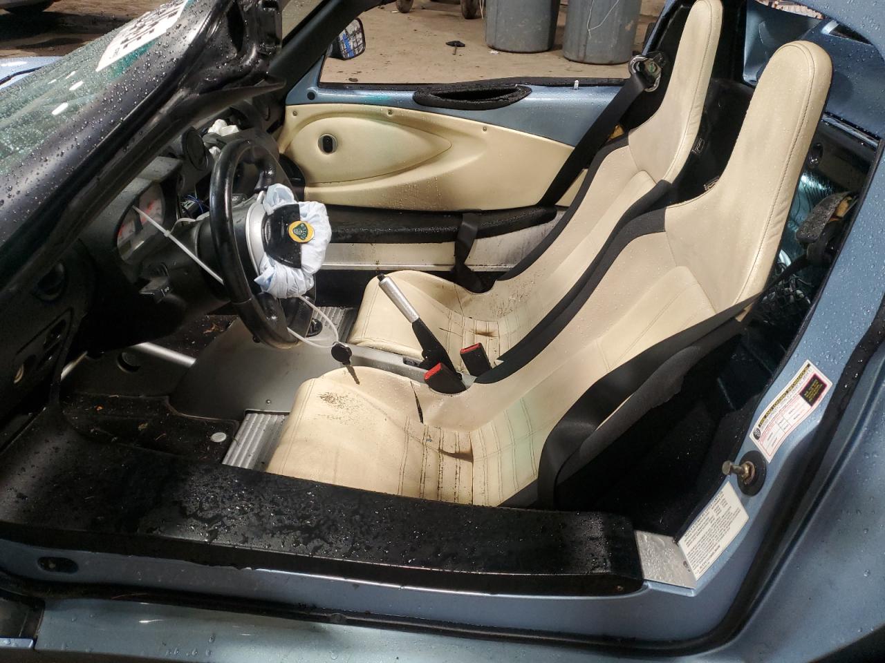 PoorThe 2006 LOTUS ELISE, coated in a striking blue, presents significant damage primarily to its rear end, suggesting a substantial impact. The body panels show considerable deformation, and the car's structural integrity appears compromised. The interior also sustained damage, and the airbags deployed, indicating a severe collision.
