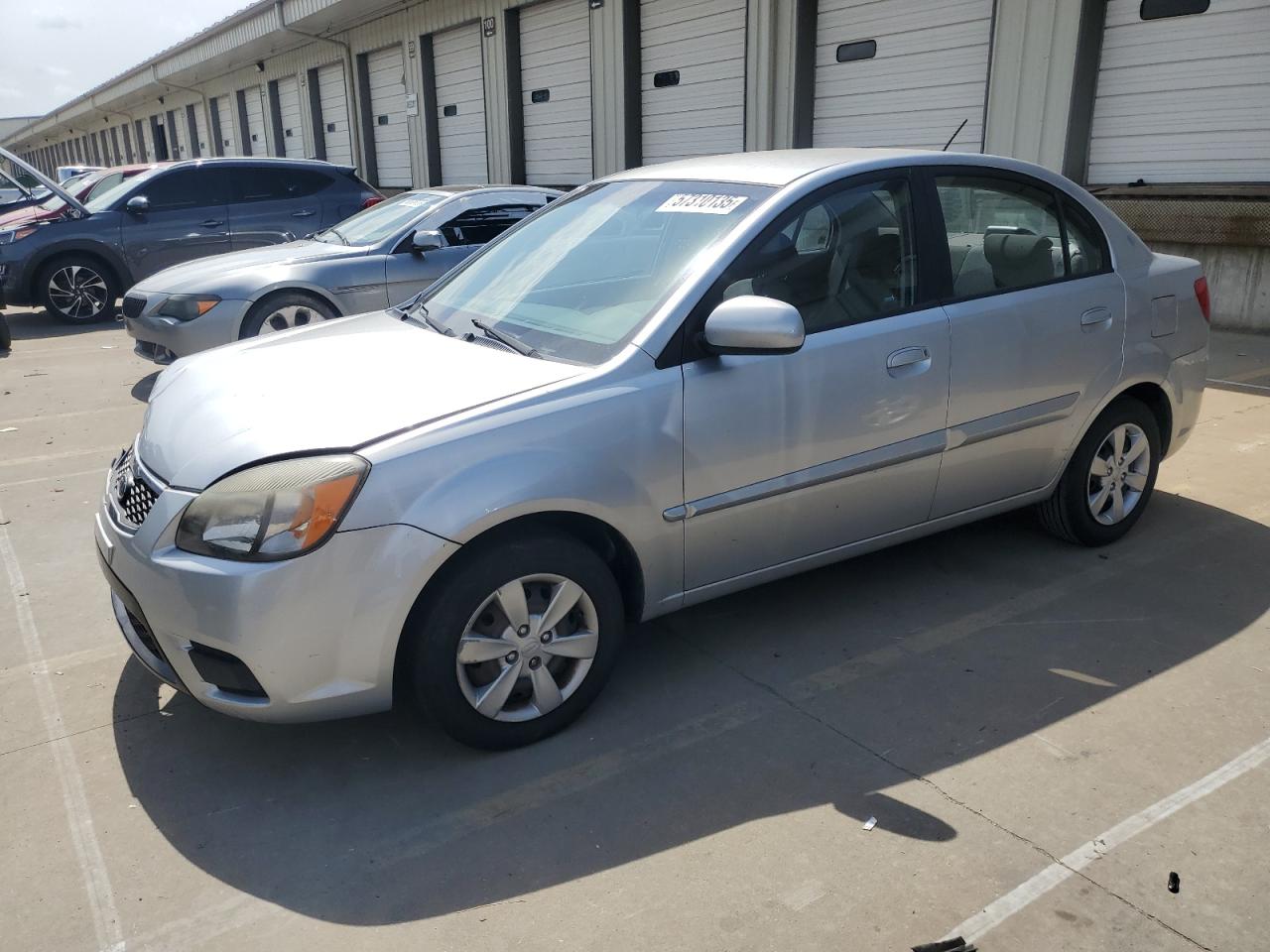 Fair2010 KIA RIO LX, silver in color, shows front end damage. The vehicle is listed as Run & Drive Verified, indicating it's drivable despite the body damage. Interior appears to be in better condition compared to the exterior. The car's lights and glasses seem intact. The car is drivable.