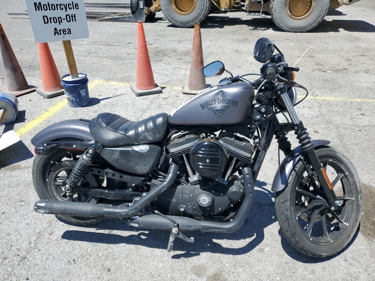 GoodThe 2017 HARLEY-DAVIDSON XL883 IRON, a gray motorcycle, shows signs of cosmetic and body damage. The exterior exhibits moderate visible damage, but the wheels appear to be intact. The interior condition is good, with minor visible damage and wear consistent with its age and mileage. This motorcycle requires some repairs and is drivable.