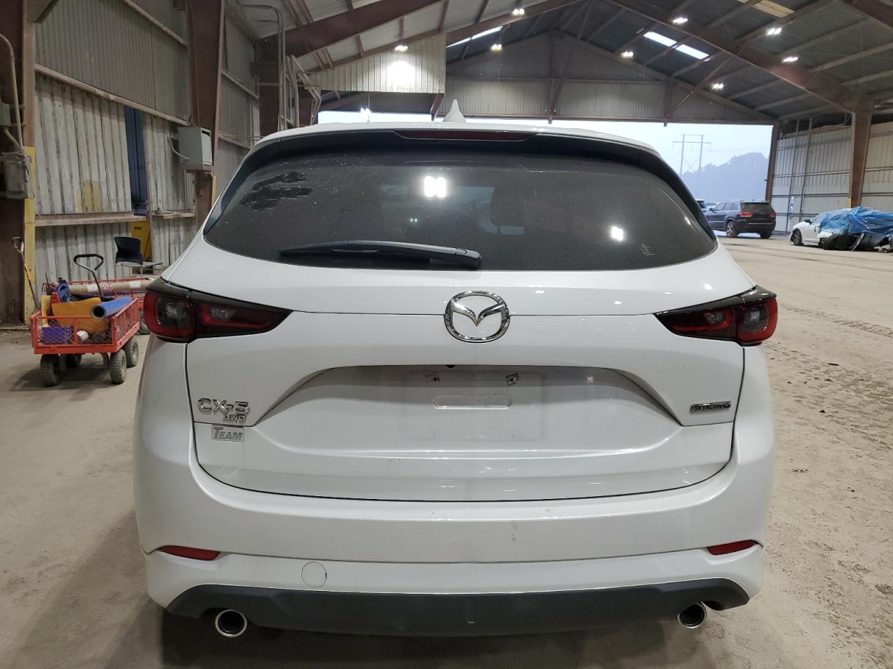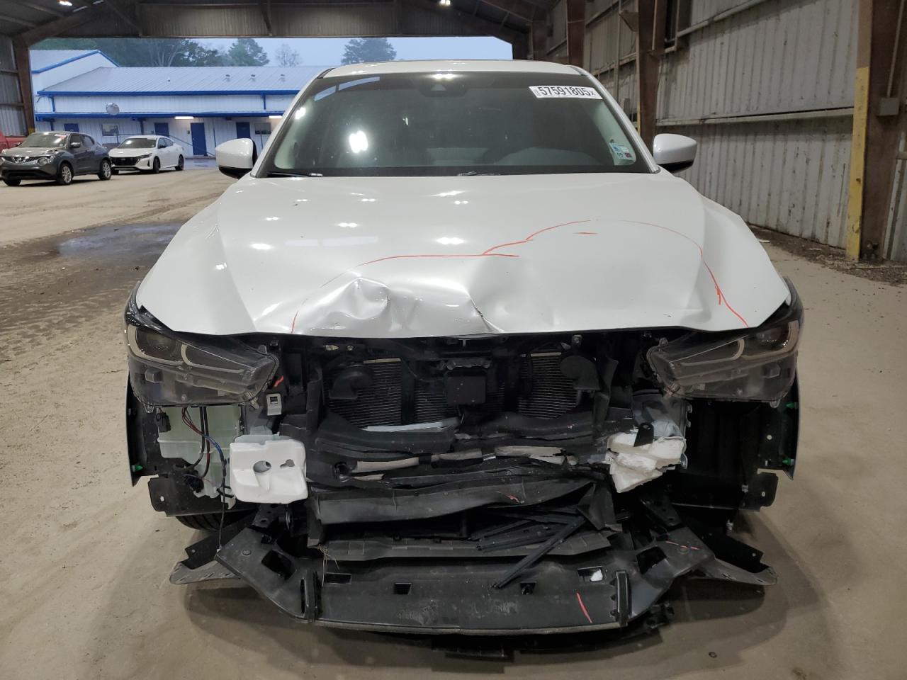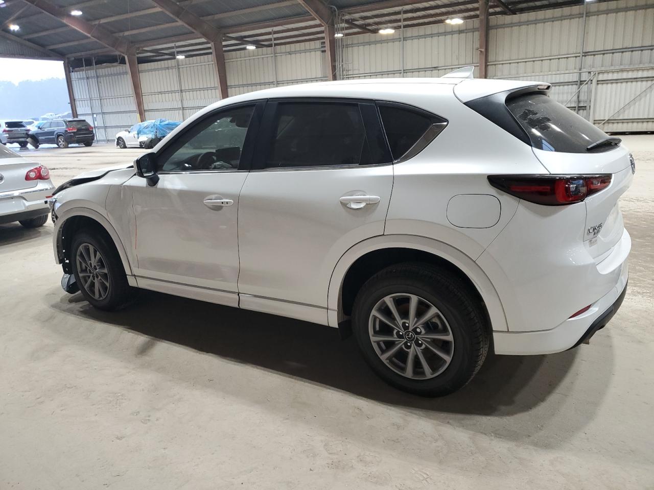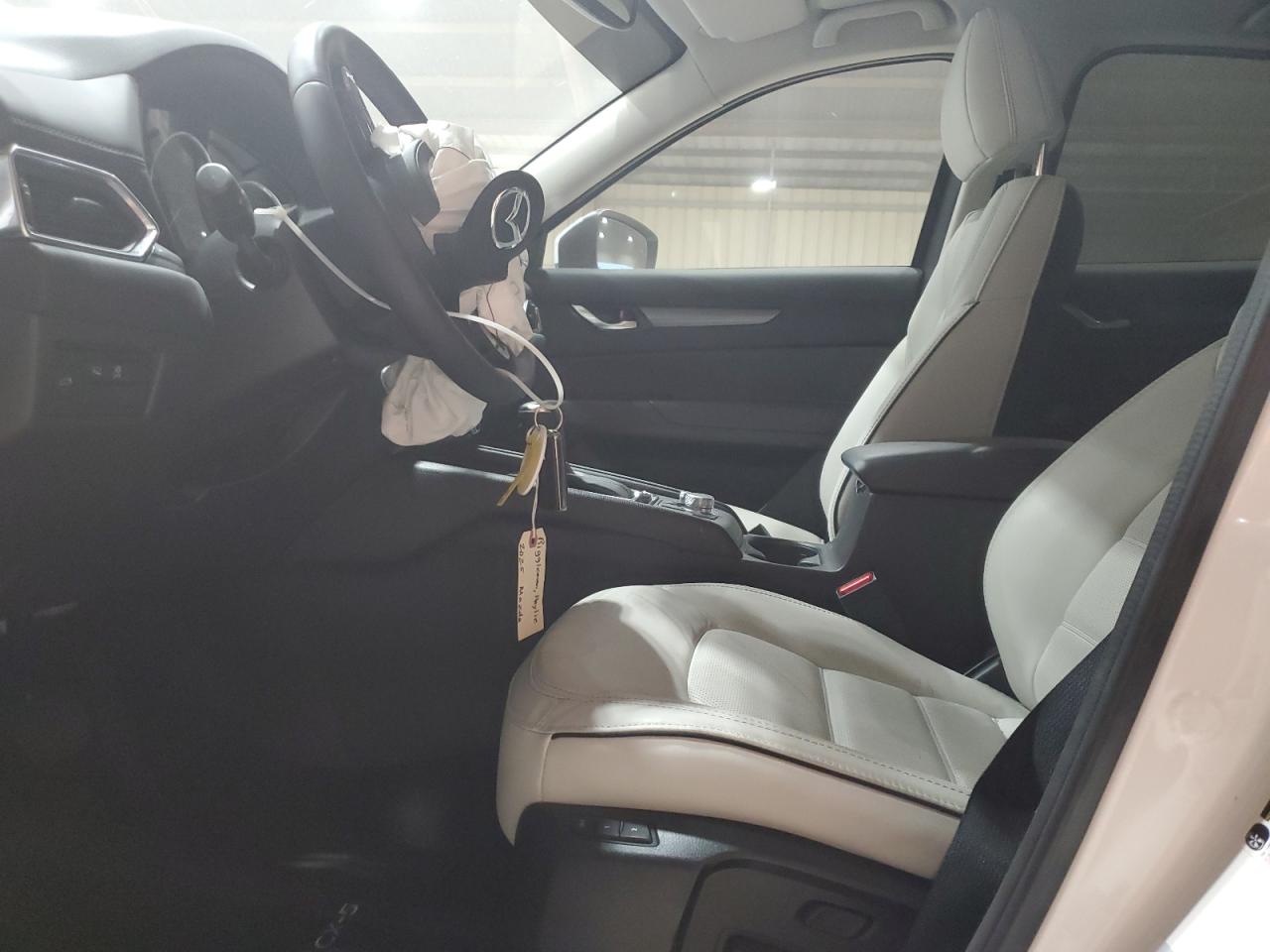 FairThis is a white MAZDA CX-5 PREFE 2025 that has sustained damage to the front end and side. The vehicle starts and drives. The car exhibits significant front-end damage, with visible damage to the body panels. Interior damage is evident, including deployed airbags. This car is in a Fair state due to moderate visible damage. It requires considerable repair but is drivable.