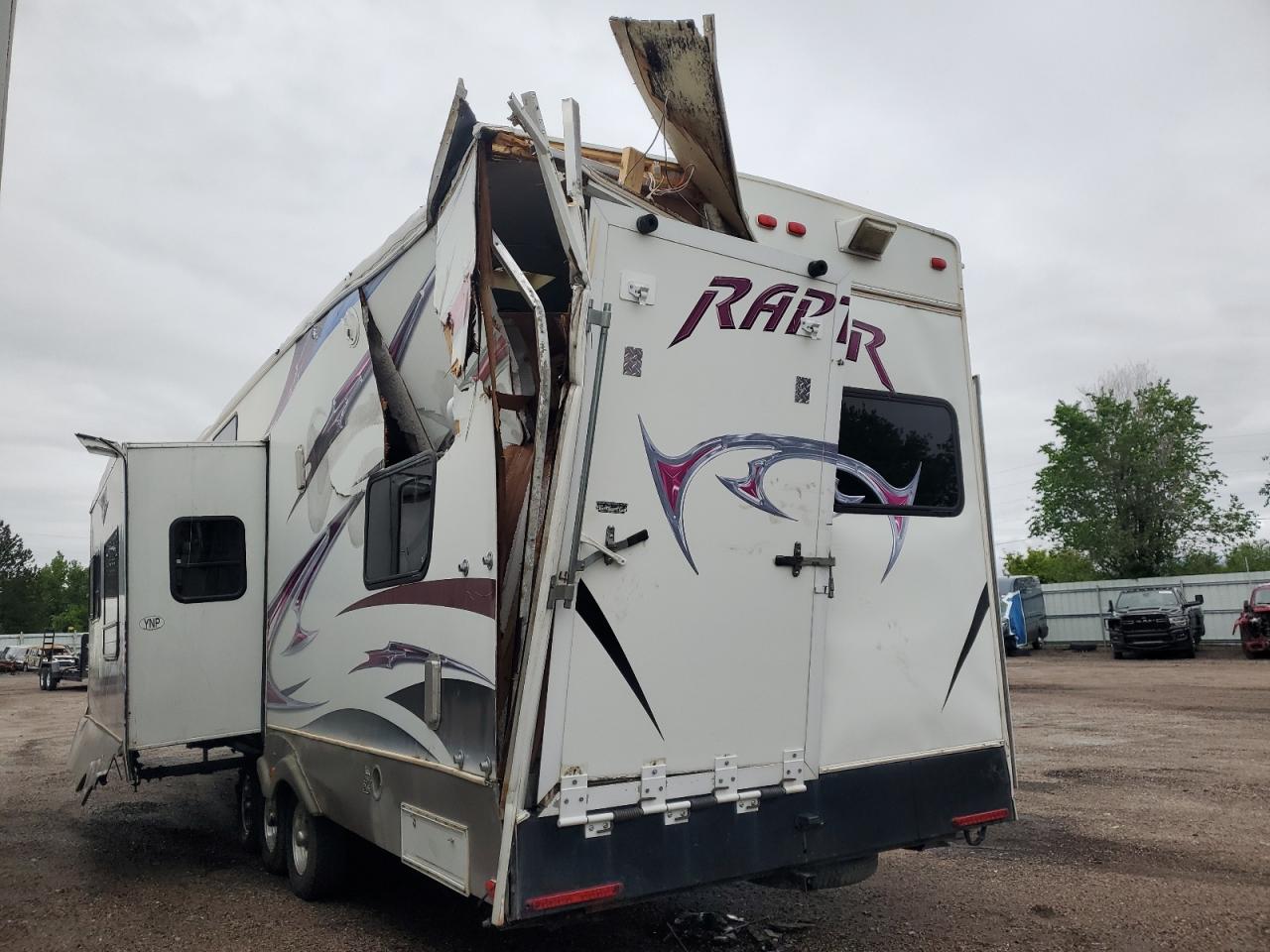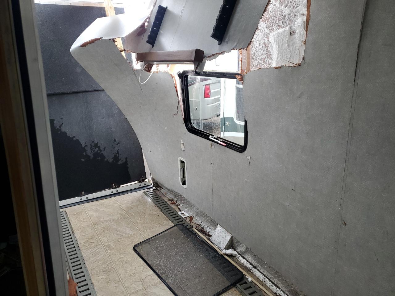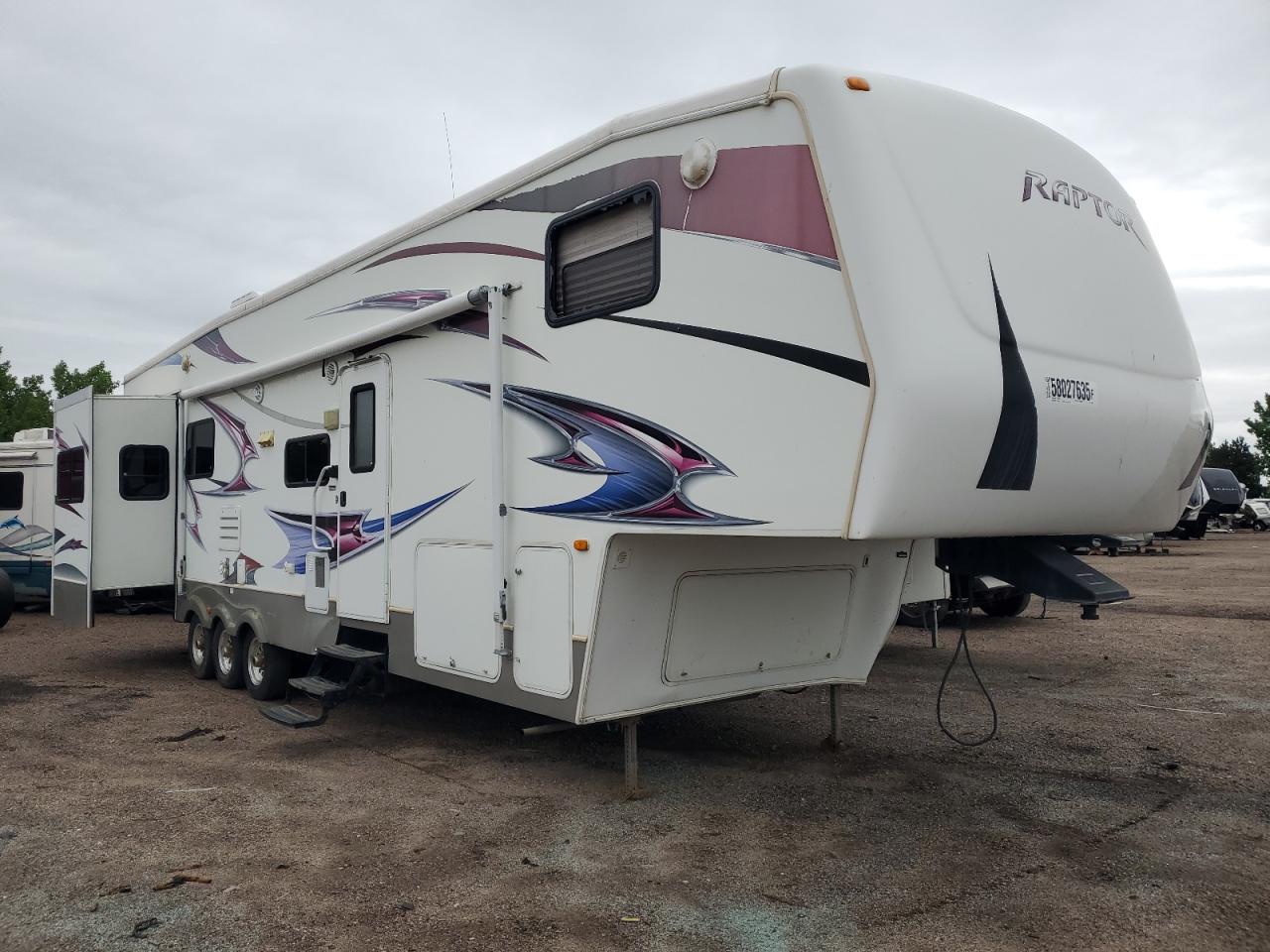 PoorThe 2008 KEYSTONE RAPTOR 3600RE has suffered severe rollover damage, primarily affecting the body. The white RV exhibits significant structural damage, including a crushed roof and compromised body panels. The interior shows damage as well. The wheels appear to be intact, but the overall condition is poor, necessitating considerable repairs. This vehicle is not drivable.