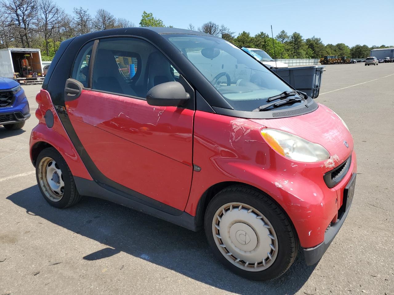 FairThis is a red 2009 SMART FORTWO with MINOR DENT/SCRATCHES and no secondary damage. The car is Run & Drive Verified. The car has visible damage, and may require some repair, but it's drivable. The interior appears to be in good condition with minor wear and tear. The wheels and lights seem to be intact. Airbags status is not available but the car might have some mechanical issues. Summary: SMART FORTWO 2009 with body damage and cosmetic issues. The overall state is Fair, with visible scratches and dents. The interior condition is rated as good.