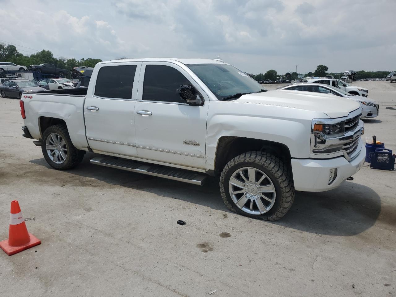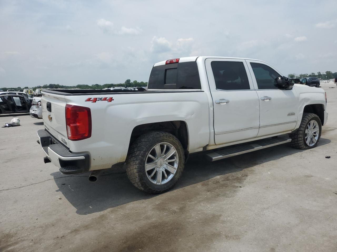 FairThis white 2018 CHEVROLET SILVERADO shows damage to the SIDE and FRONT END. The vehicle's body panels have sustained damage. The interior appears to be in Good condition. The vehicle is drivable.