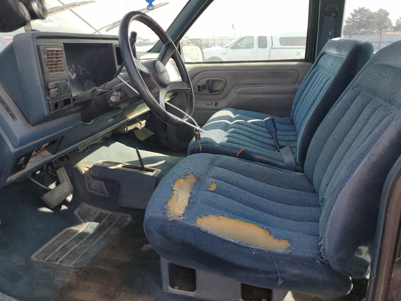 FairThis is a 1989 Chevrolet GMT-400 K2 pickup truck. The vehicle's primary damage is to the rear end, with no secondary damage reported. The exterior is green. The vehicle shows signs of wear and tear, particularly with damage to the body panels. The interior also has noticeable wear, particularly on the seats. Despite the damage, the car seems to be drivable. Summary: * **Damage:** Body damage at the rear, paint damage, and interior wear. * **Overall Condition:** Fair