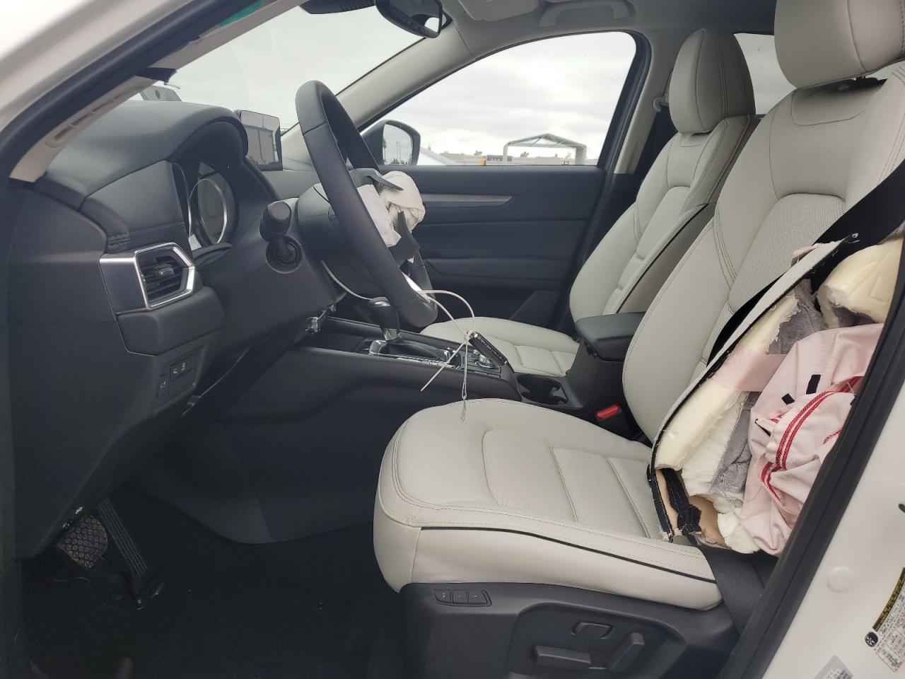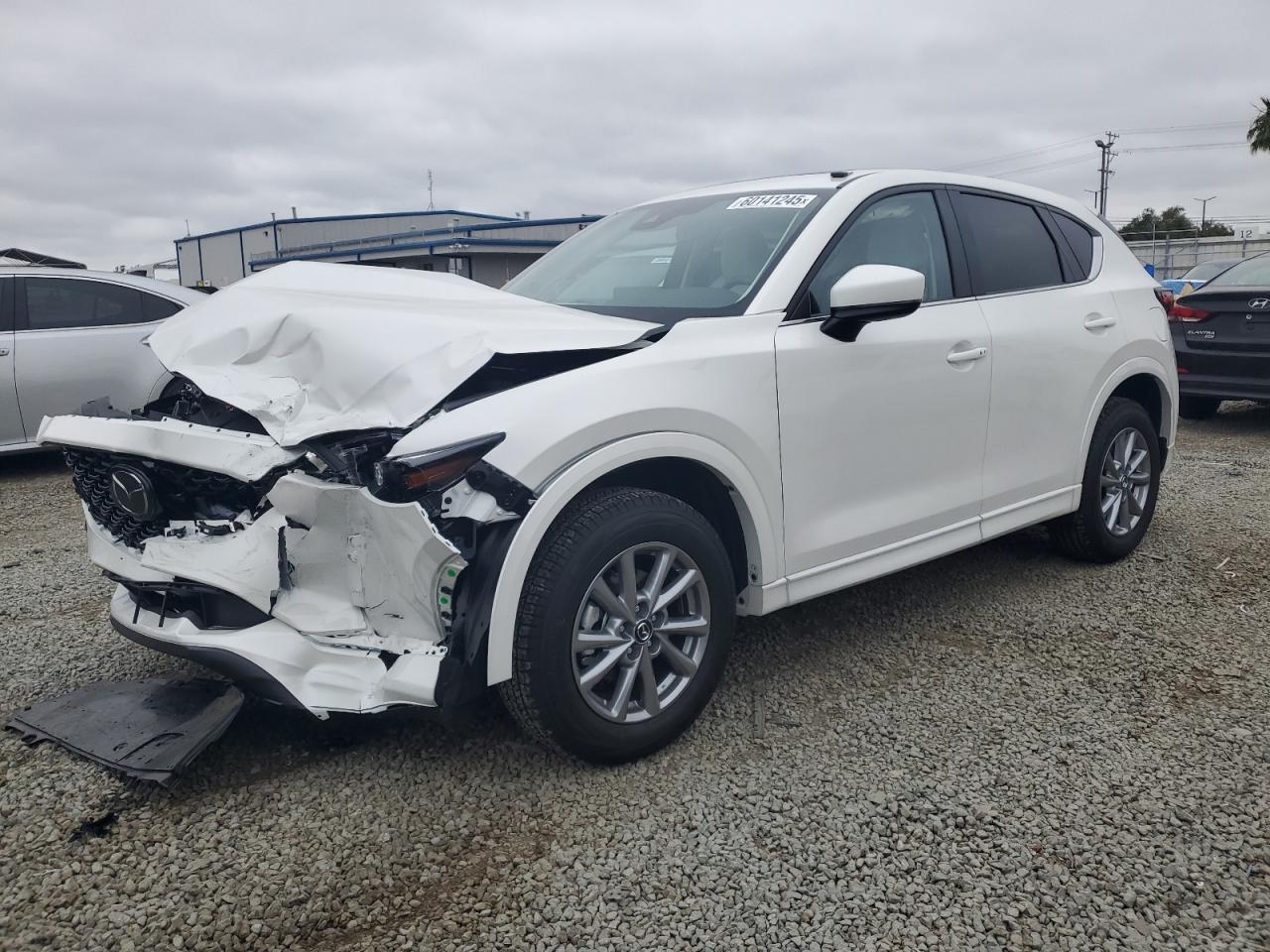 FairThe white 2025 MAZDA CX-5 PREFE exhibits significant front-end damage, categorizing the Vehicle Damage Category as Body. The overall condition is rated as Fair. The interior shows airbag deployment. The wheels and glass appear to be intact. This vehicle has a Run & Drive Verified start code.