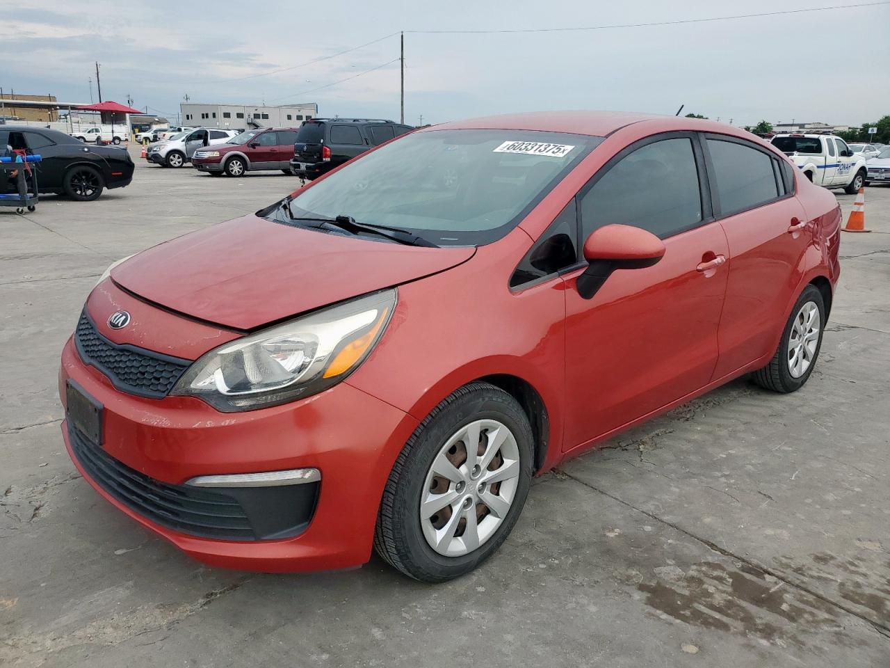 Good2017 KIA RIO LX, Red. Run & Drive Verified. Primary damage: HAIL. Secondary damage: no damage. Overall, the vehicle presents with hail damage across the body. The paint and trim show signs of cosmetic imperfections. The wheels and glasses appear to be in good condition. The interior shows normal wear and tear. The airbag is present. The car is drivable.
