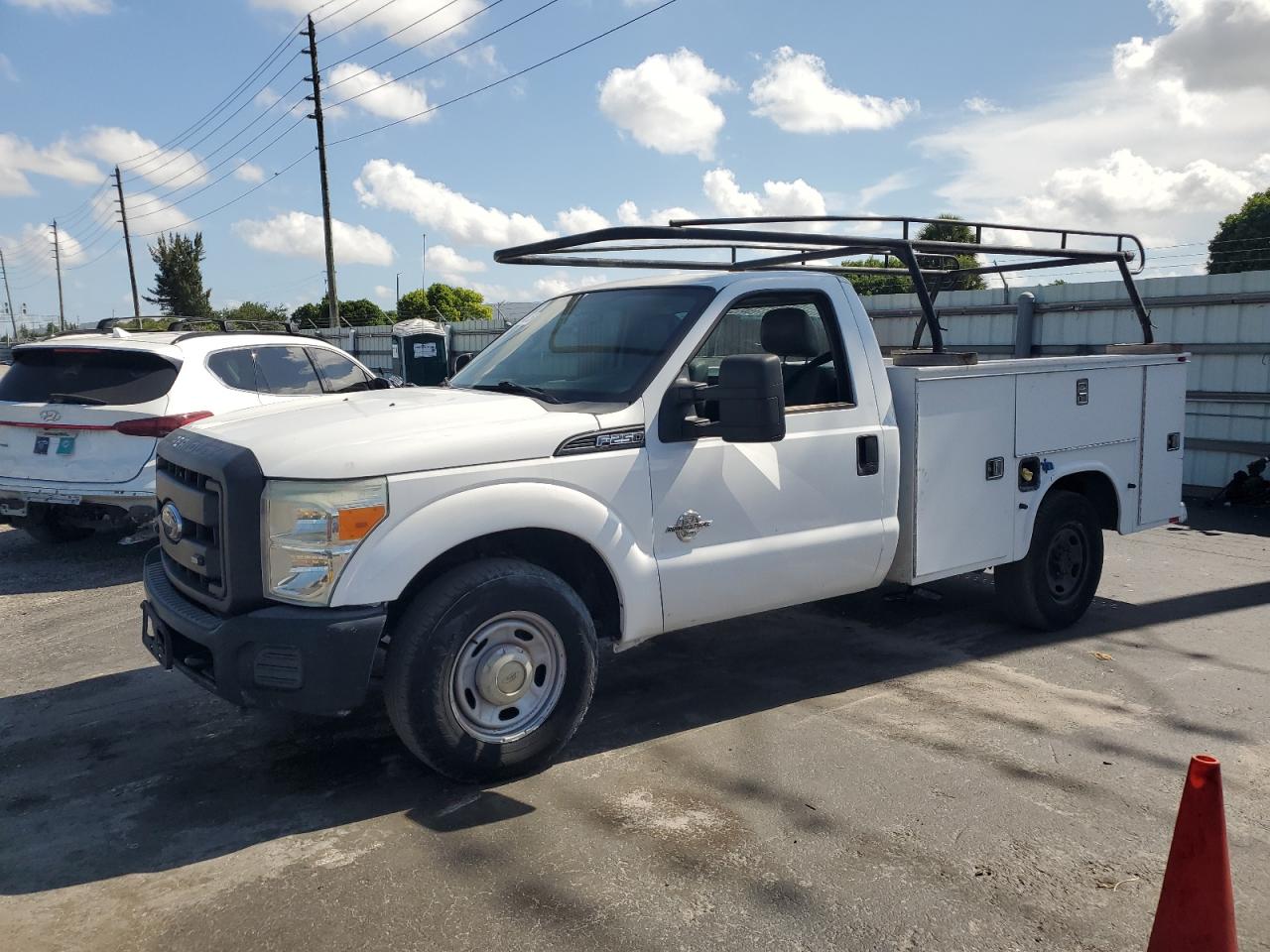 GoodFord F250 Super Duty 2015 - White work truck in good condition. It's a Run & Drive Verified vehicle with normal wear and no secondary damage. Features a ladder rack and utility bed. Interior condition is good, with normal wear. The vehicle has a good overall condition.