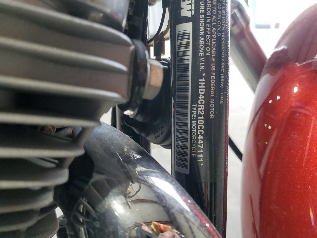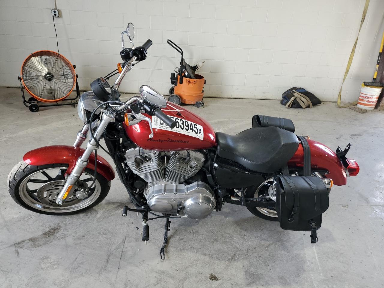 Good2012 HARLEY-DAVIDSON SPORTSTER. The motorcycle is red. It is a Run & Drive vehicle. The overall condition of the bike is good, with only normal wear and tear. The body shows some signs of use, but no major damage is visible. The interior appears to be in very good condition, with minimal wear. The lights and glasses appear to be intact. The bike is drivable and seems well-maintained.