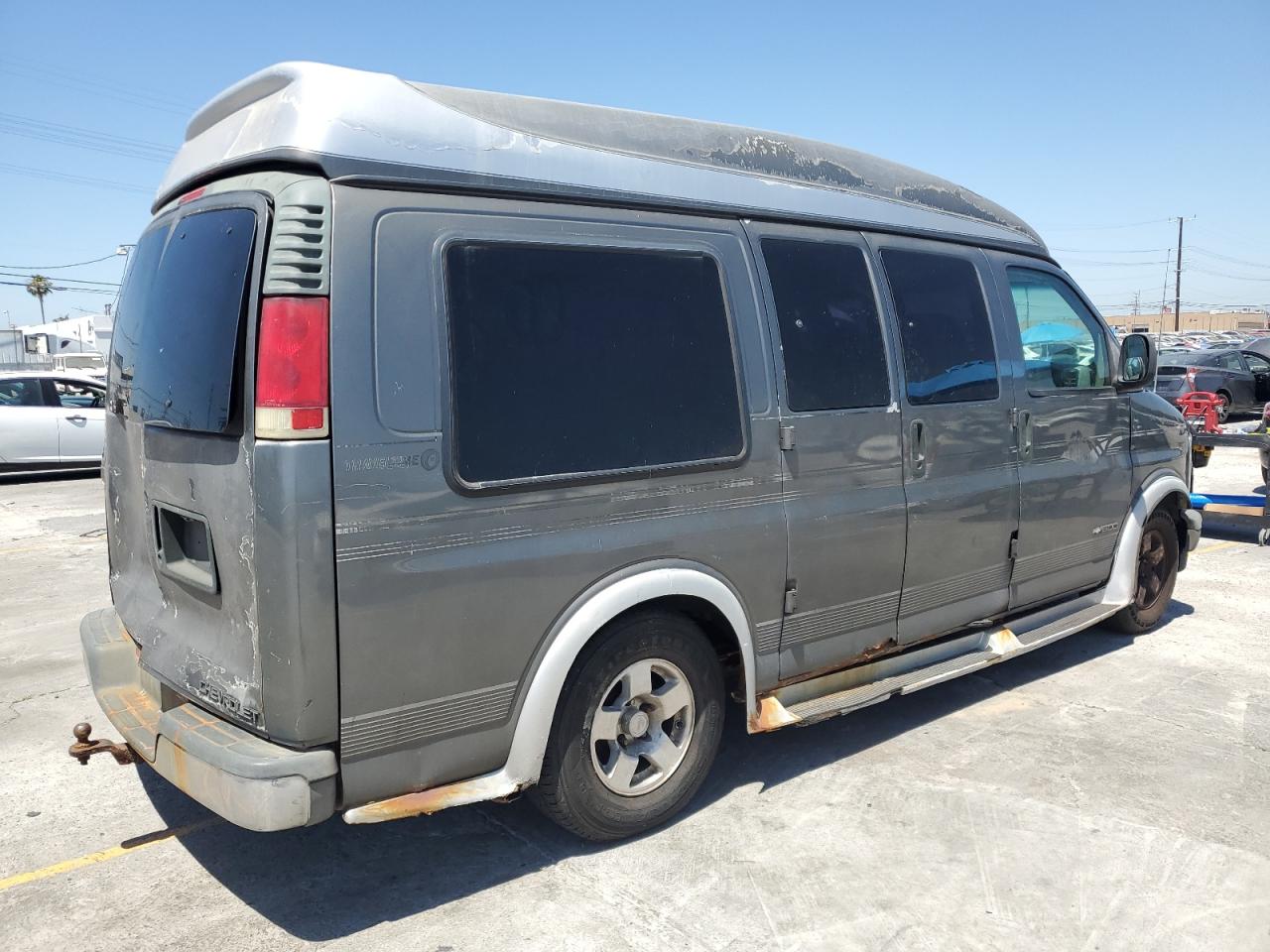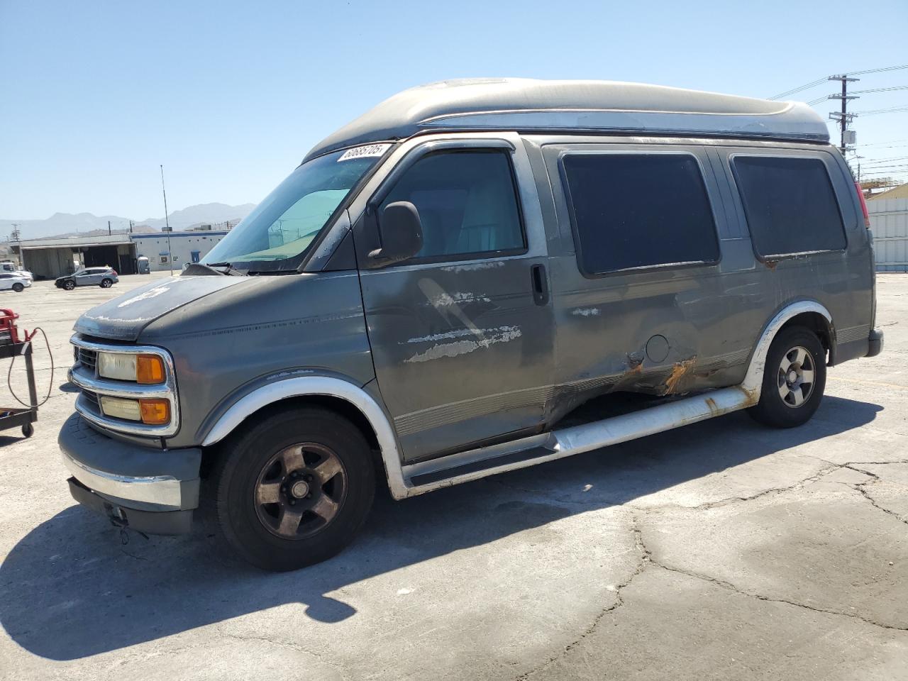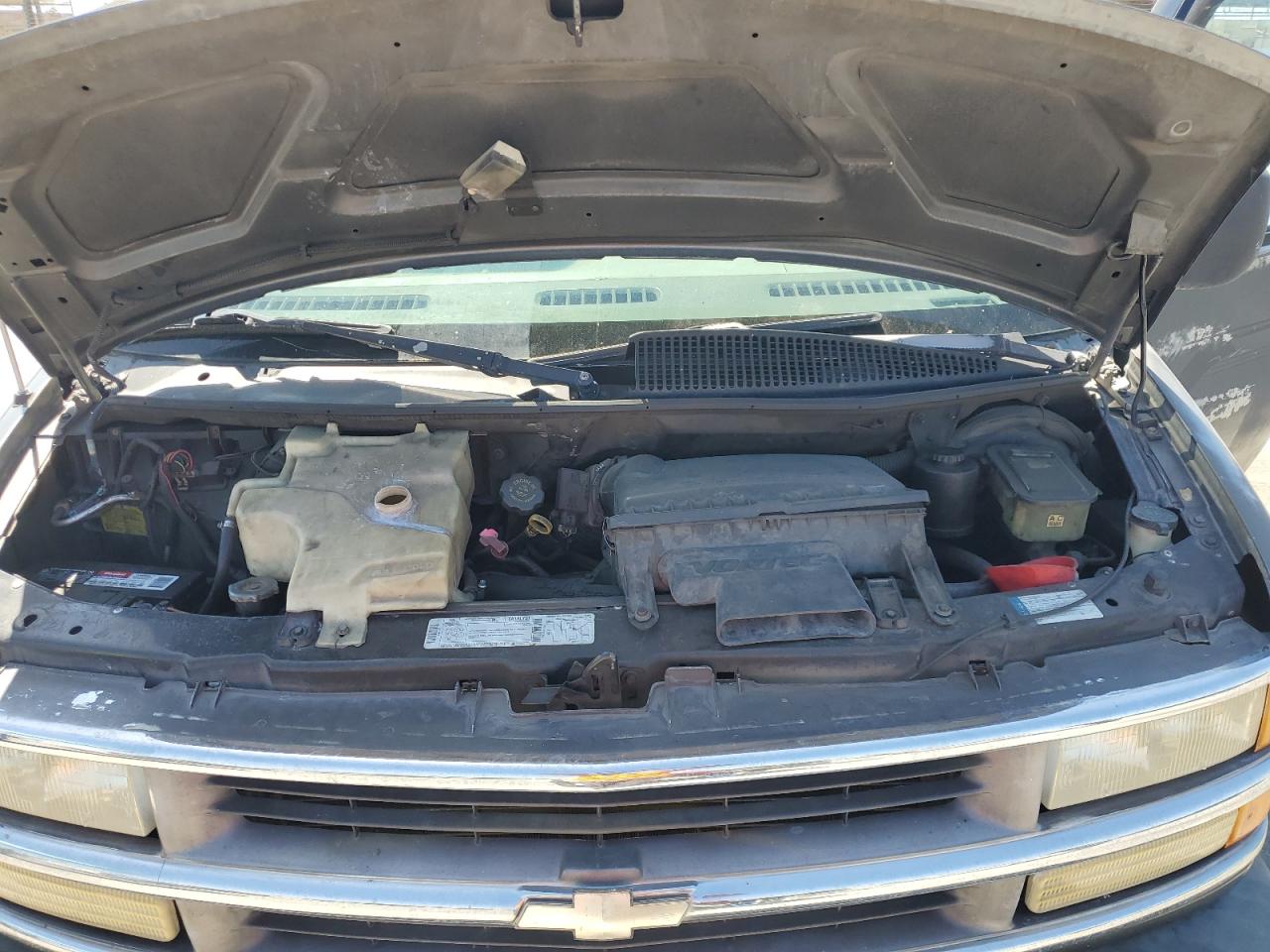 FairThe 1998 CHEVROLET EXPRESS G1 shows significant damage. The primary damage is to the rear end, with secondary damage along the side. The vehicle is gray and the wheels appear intact. The lights and windows are present but may be affected by the overall condition. The vehicle's start code indicates it starts. Inside, the interior shows wear, and dashboard instruments are visible.
