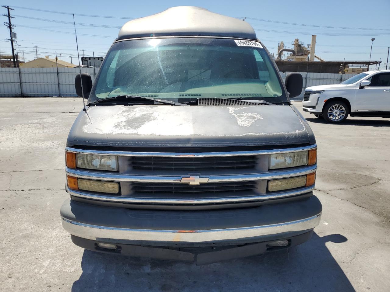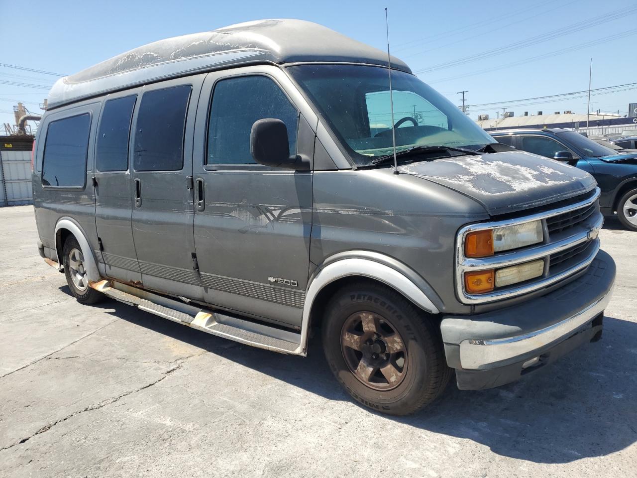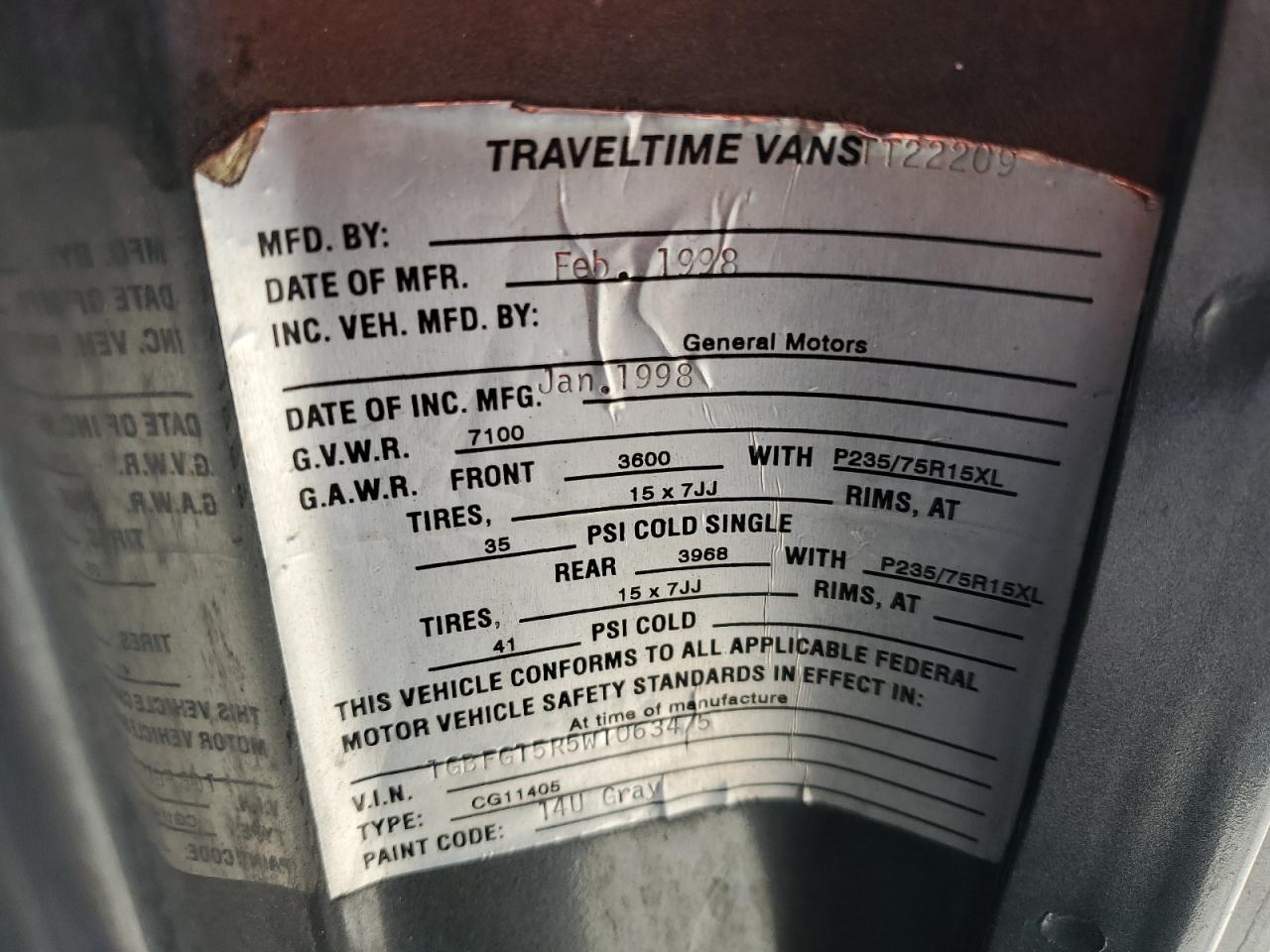 FairThe 1998 CHEVROLET EXPRESS G1 shows significant damage. The primary damage is to the rear end, with secondary damage along the side. The vehicle is gray and the wheels appear intact. The lights and windows are present but may be affected by the overall condition. The vehicle's start code indicates it starts. Inside, the interior shows wear, and dashboard instruments are visible.