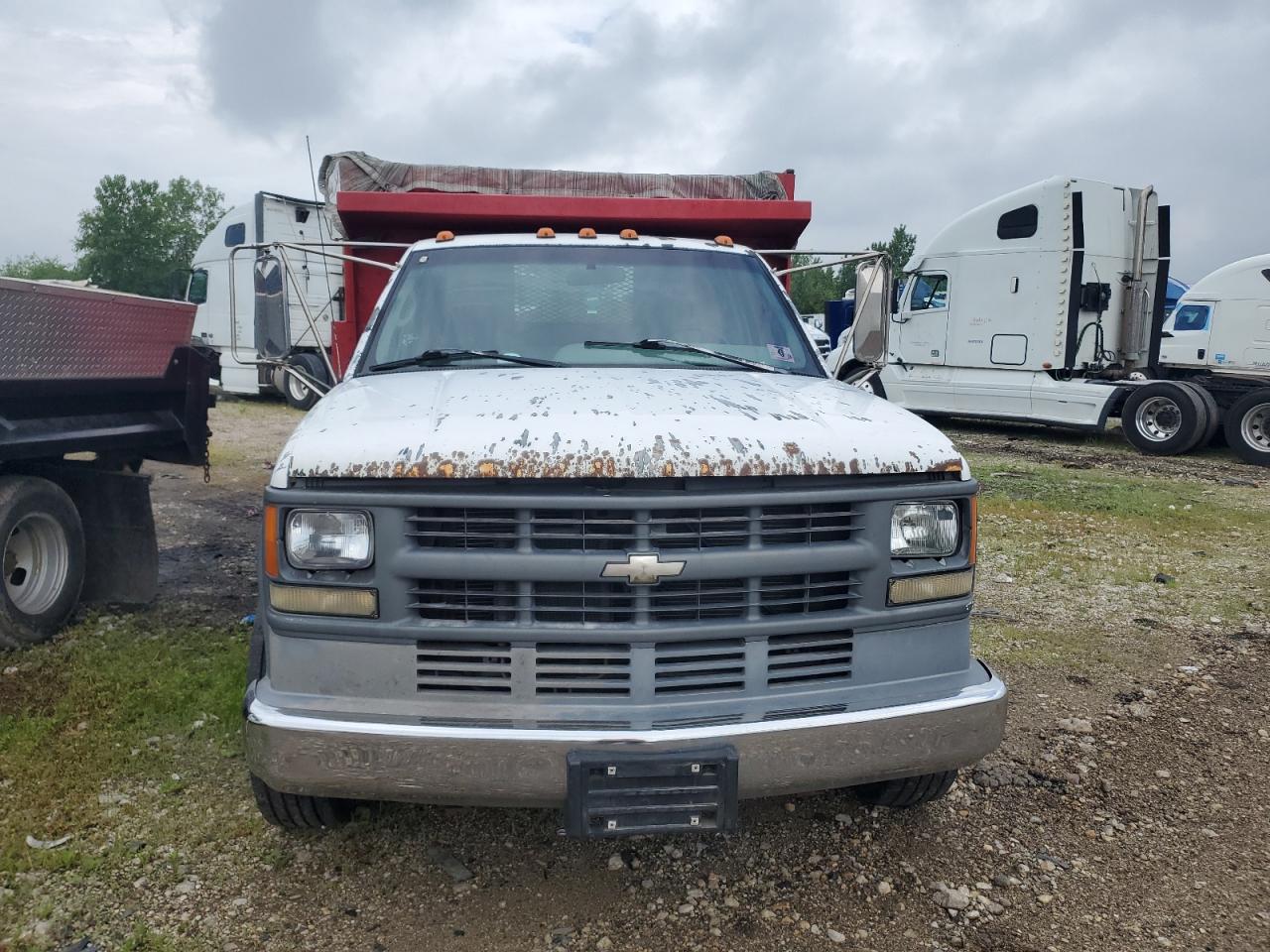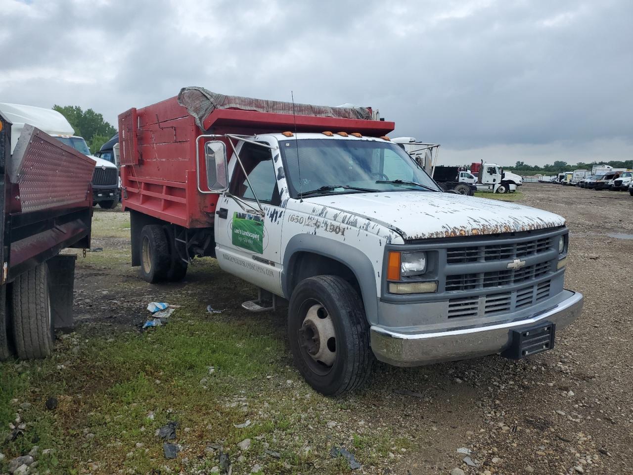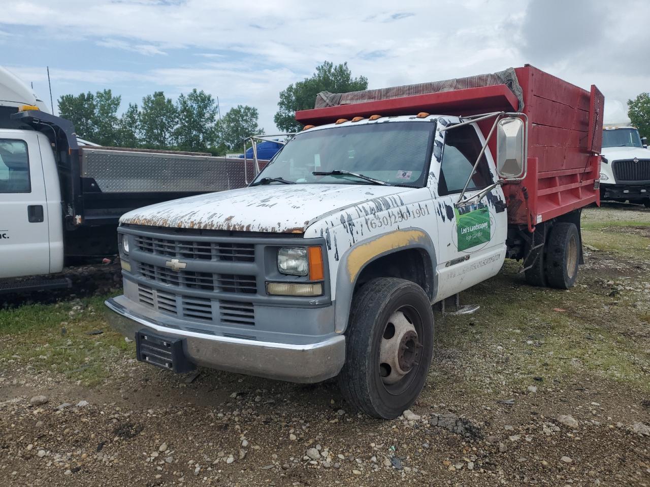 FairThis is a 1996 CHEVROLET GMT-400 C3 dump truck. The vehicle shows signs of wear and tear, with a two-tone color scheme and cosmetic damage. It is reported as Run & Drive Verified. The vehicle's condition suggests it may require some repairs, but remains drivable.