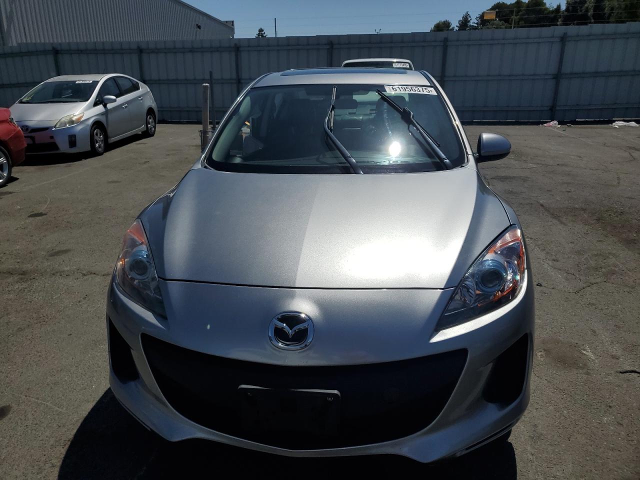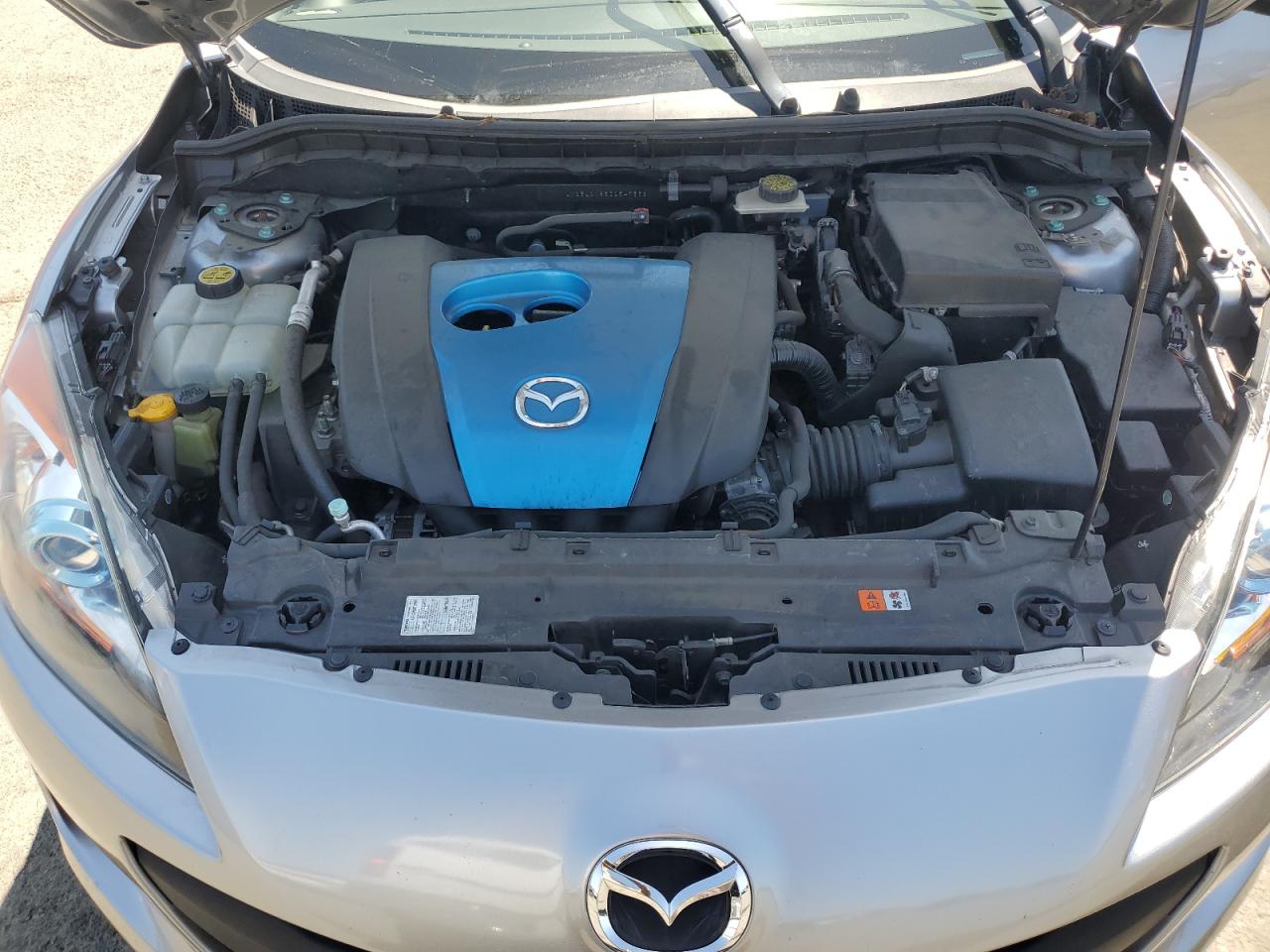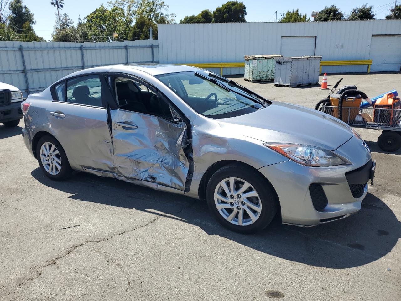 FairThe 2012 Mazda 3 is silver with significant side damage. The primary damage is to the side panels, with no visible secondary damage. The wheels and lights appear to be in good condition. Interior shows normal wear and tear, with the seats and dashboard showing minor signs of use.