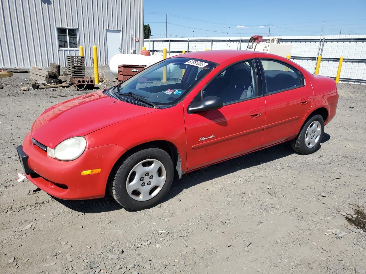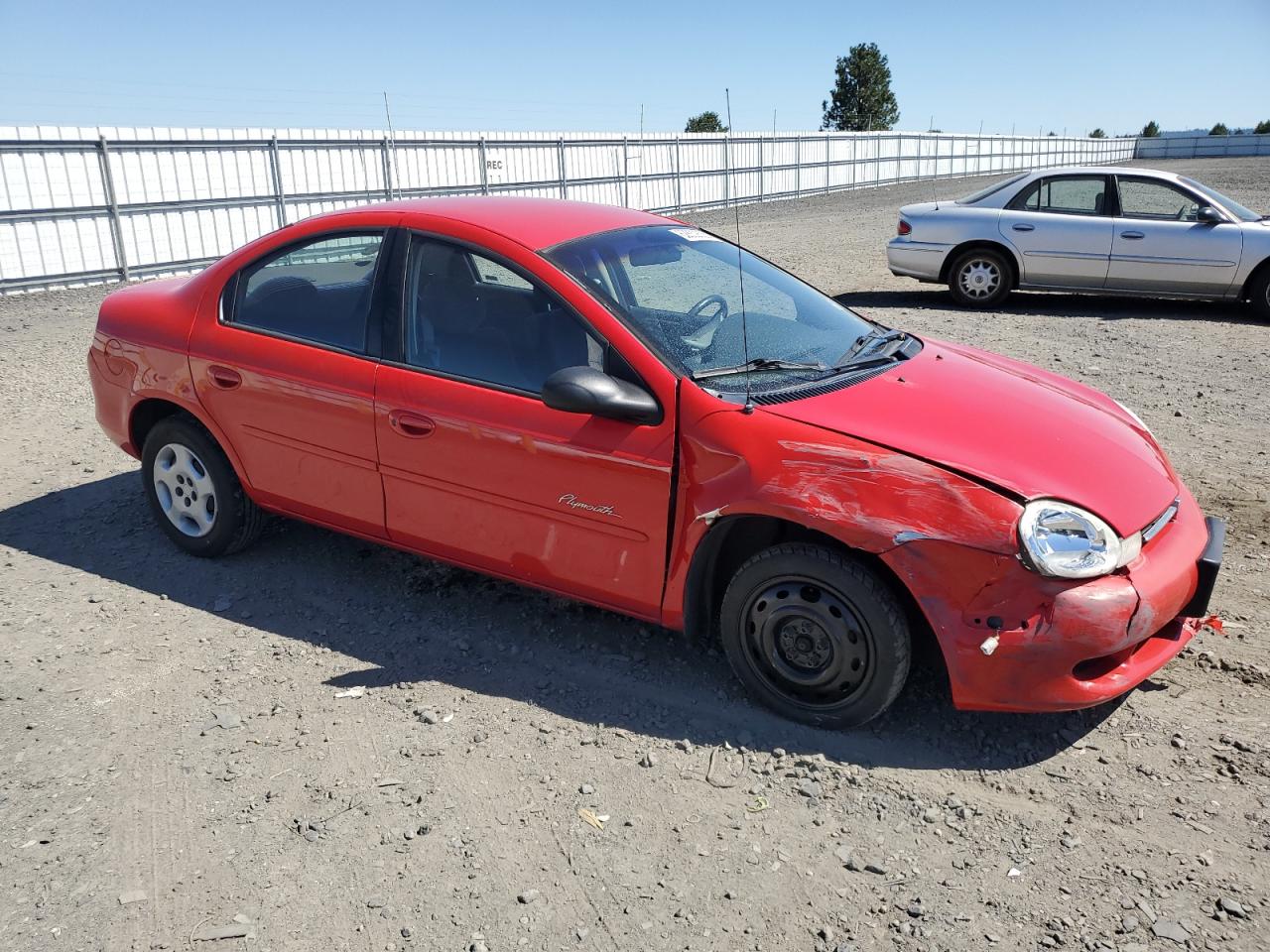FairPlymouth Neon Base 2000 in red, with Run & Drive Verified status, exhibits front and rear end damage. The exterior shows moderate visible damage. The interior condition is rated as good, and the overall state is fair. The vehicle's wheels appear to be in good condition. The car is drivable.