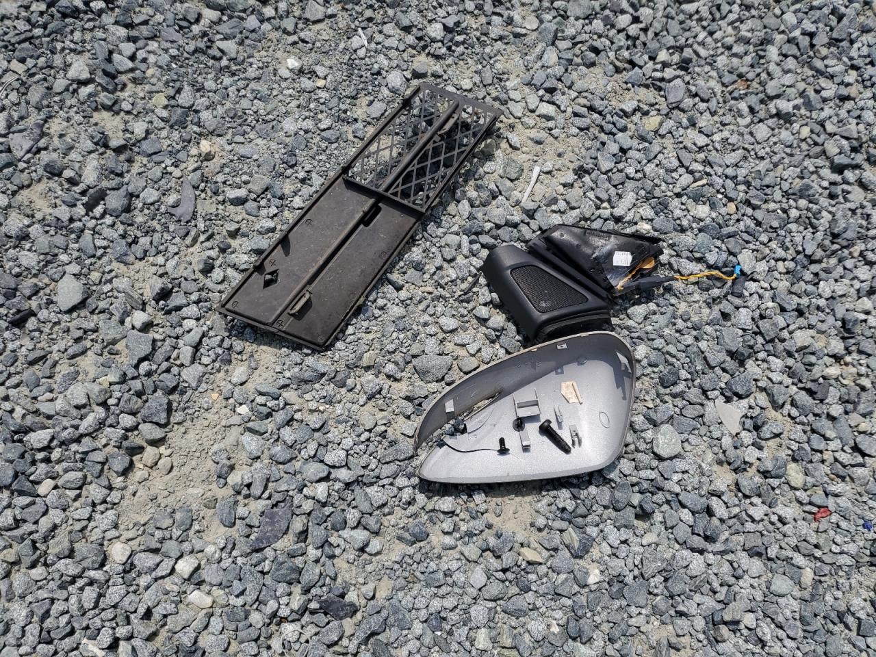 The vehicle exhibits significant body damage with mechanical issues, including missing headlights and taillights, as well as interior damage. The black paint shows signs of wear.